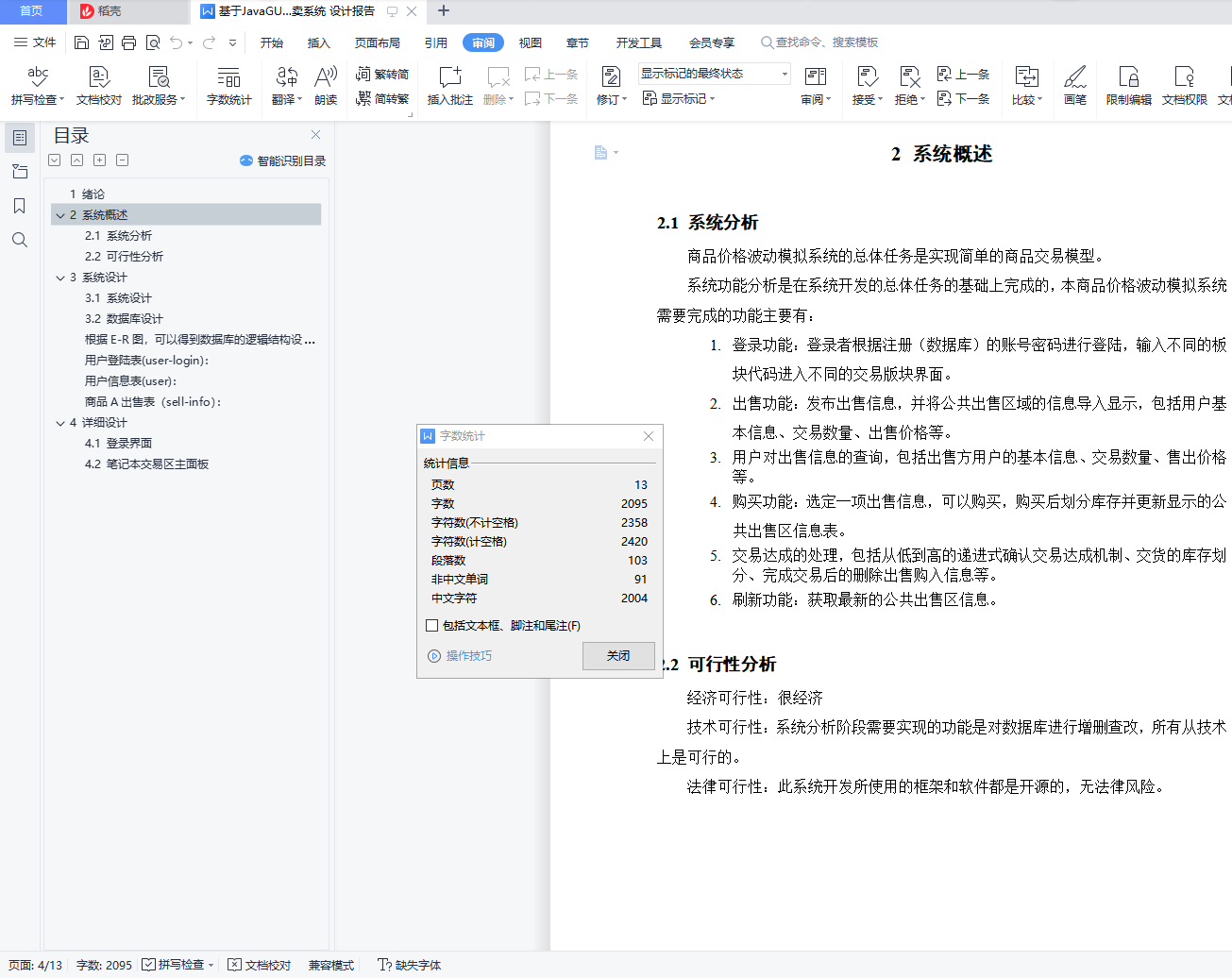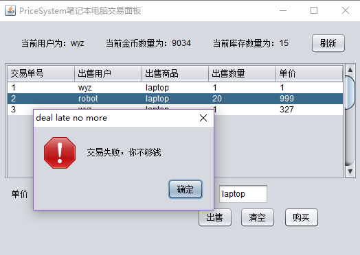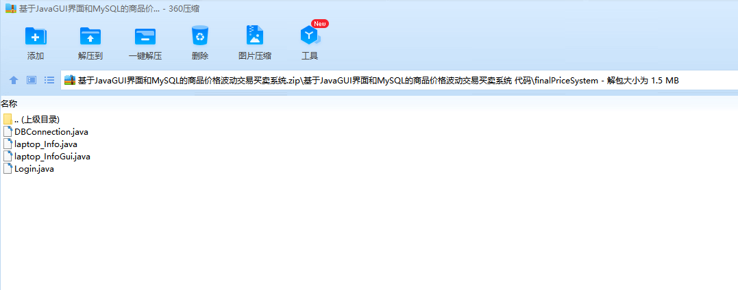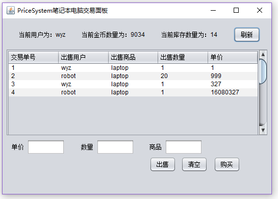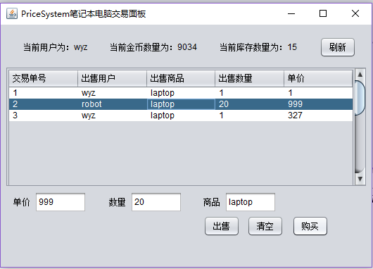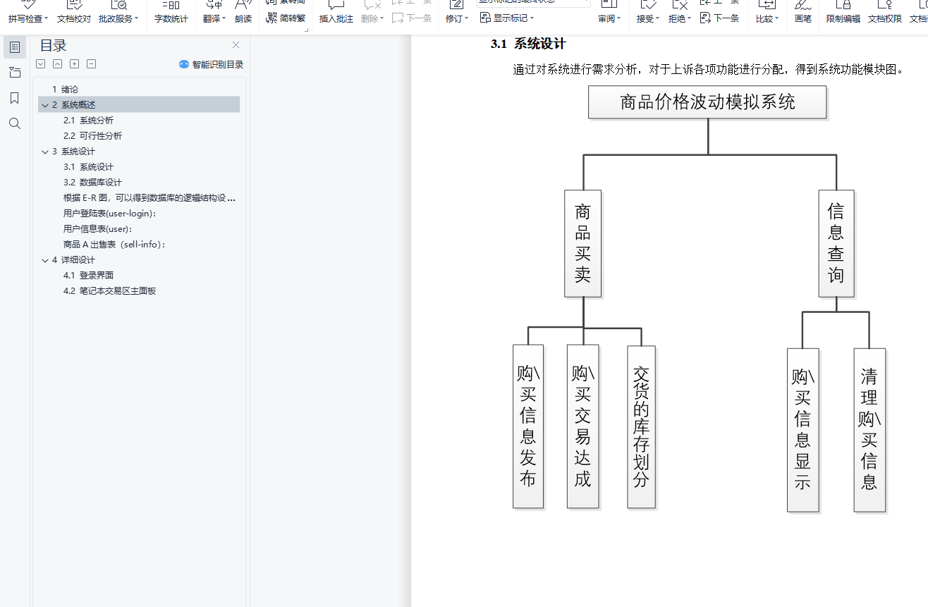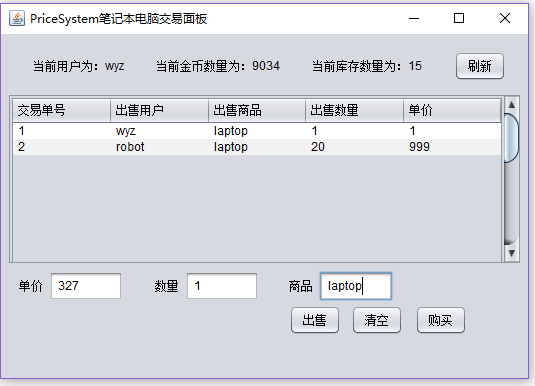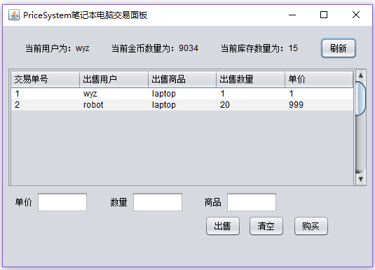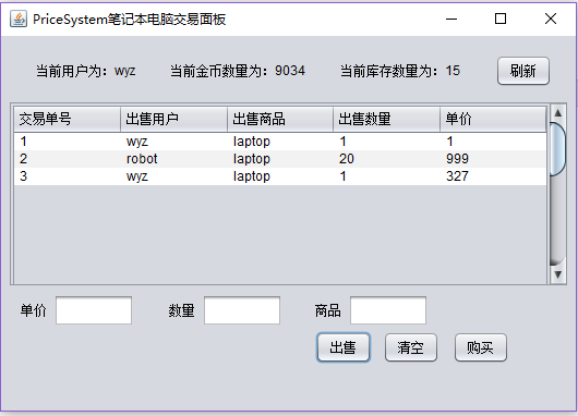 摘 要这是一个基于javaGUI界面和mysql数据库做的一个交易买卖系统,该系统能实现如下功能:通过不同的面板选项登录会跳转到不同的面板,看到不同的内容。用户可以在对应面板发布出售信息用户可以对面板的各类出售信息执行购买操作刷新获取最新价格该系统使用MySQL5.0.67创建数据库,使用Eclipse Java 2019-03作为开发平台,使用的JDK版本为jdk1.8.0_211。目录1 绪论 32 系统概述 42.1 系统分析 42.2 可行性分析 43 系统设计 53.1 系统设计 53.2 数据库设计 6根据E-R图,可以得到数据库的逻辑结构设计,进而设计出数据库: 10用户登陆表(user-login): 10用户信息表(user): 10商品A出售表(sell-info): 104 详细设计 114.1 登录界面 114.2 笔记本交易区主面板 12