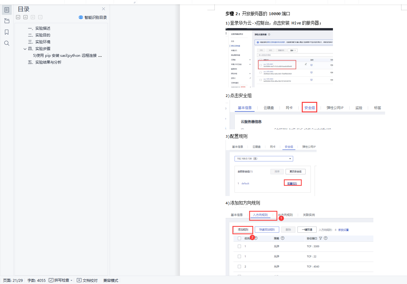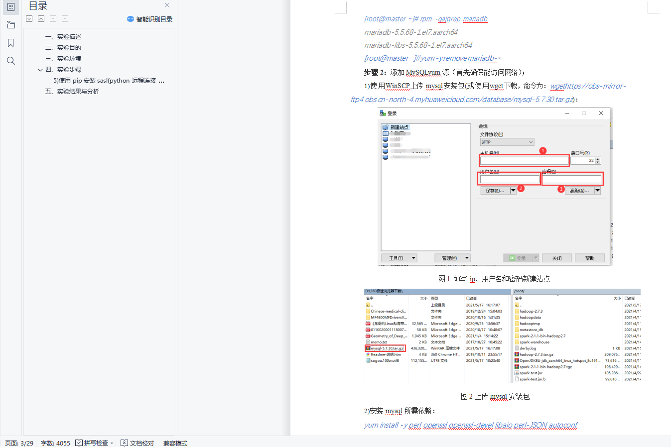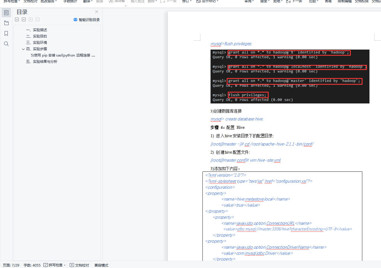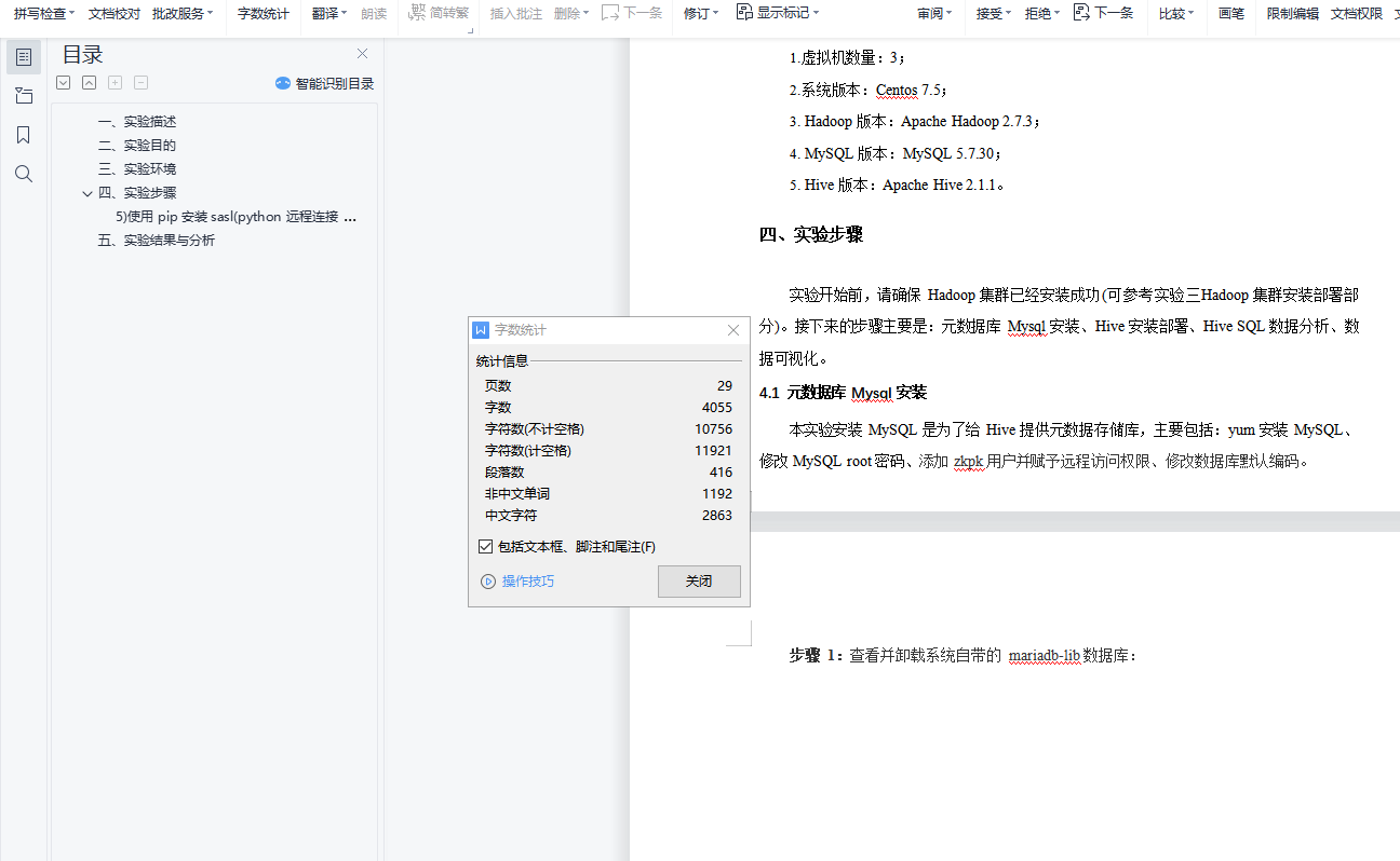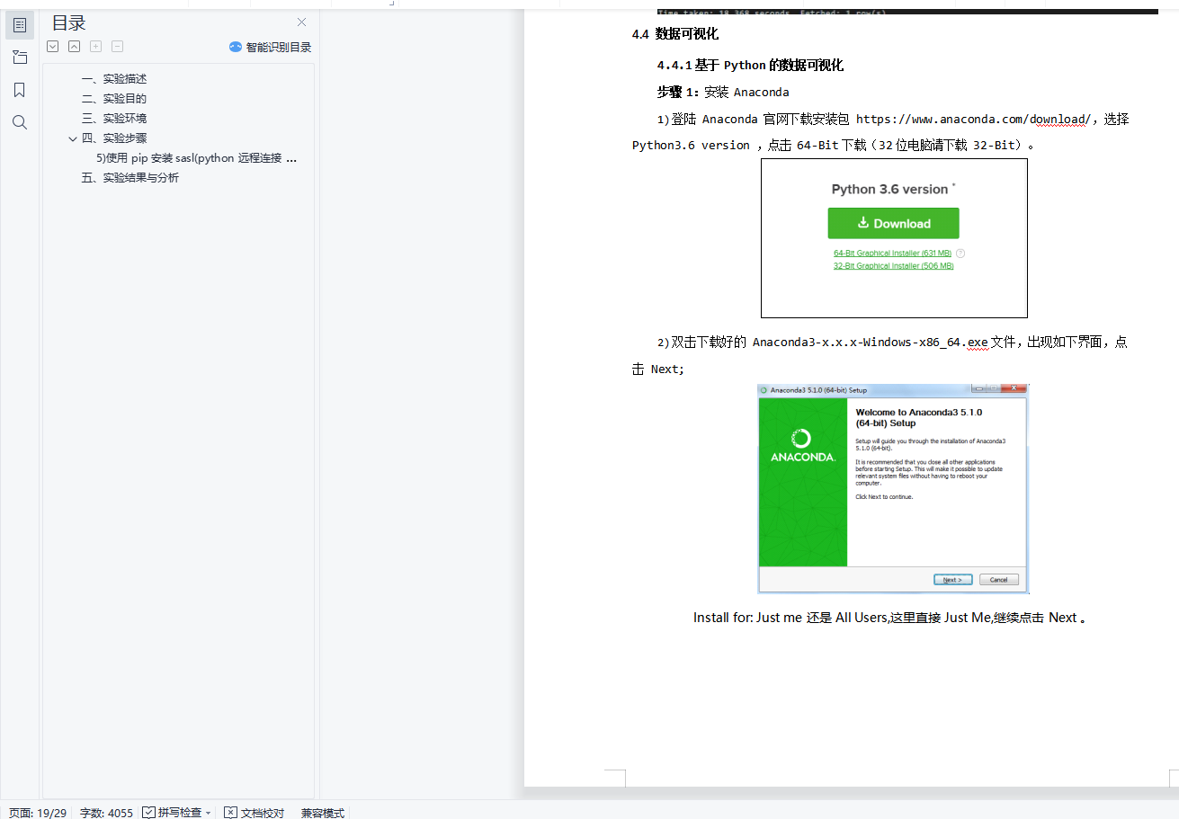 目录一、实验描述 1二、实验目的 1三、实验环境 1四、实验步骤 15) 使用 pip 安装 sasl(python 远程连接 hive)(若 pip 安装失败,可使用 conda install 22五、实验结果与分析 27一、实验描述利用 hive 命令行完成搜狗日志各项数据分析,使用 Python 进行数据可视化。主要步骤包括:安装部署 Hive、启动 Hadoop 集群、进入 Hive 命令行、创建数据库和数据表、加载或导入数据、用Hive SQL 完成需求、使用 Python 实现数据可视化。二、实验目的1.掌握安装Hive 的方法;2.掌握Hive 创建数据库、导入数据的方法;3.学会使用Hive SQL 分析数据;4.学会数据可视化的方法。三、实验环境1.虚拟机数量:3;2.系统版本:Centos 7.5;3.Hadoop 版本:Apache Hadoop 2.7.3;4.MySQL 版本:MySQL 5.7.30;5.Hive 版本:Apache Hive 2.1.1。