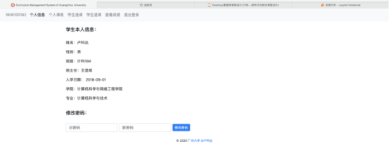 (1) 学生基本信息的查询,学生可以对本人的系统登陆密码进行修改。