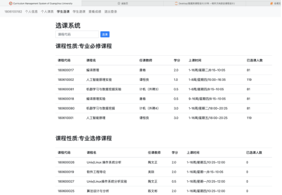 (3) 学生可以进行选课,专业必修课程系统会提前帮助学生们选上。