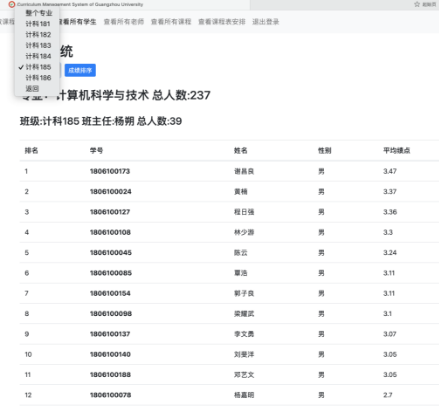 (13) 系主任可以查看整个系的全部学生以及他们的平均绩点,可以对每个班进行排名,或者也可以对整个系进行排名。