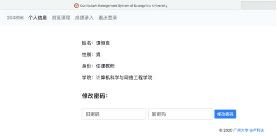 (6) 任课教师基本信息的查询,老师可以对本人的系统登陆密码进行修改。