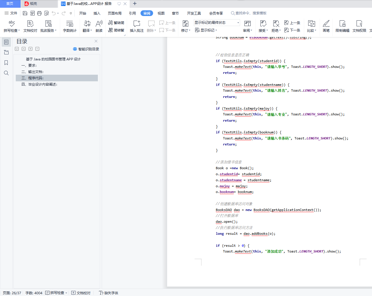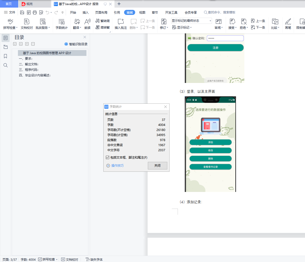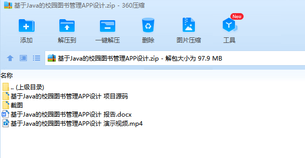 基于Java的校园图书管理APP设计目录基于Java的校园图书管理APP设计 1一、要求: 1二、输出文档: 1三、程序代码: 1四、毕业设计内容阐述: 1一、要求:题目自拟,但要求能够使用到Activity、Service、Broadcast Receiver等组件及文件I/O操作、SQLite数据库操作、HTTP网络连接操作、调用系统服务或其他应用等技术实现一个Android应用程序。(部分)二、输出文档:采用DOC文档的形式,输出文档内容需要包括:效果截图、实现的功能描述、关键代码。三、程序代码:托管到代码平台上:github.com或gitee.com上,老师会随机checkout下来部分同学的代码运行。四、毕业设计内容阐述:总:毕业设计呈现的是一个校园图书管理app,代码是在GitHub上找的(如有雷同,不胜荣幸),但是分析和理解展现是自己的(自己的分析已经注释在代码中,注释就是我分析和理解的过程)