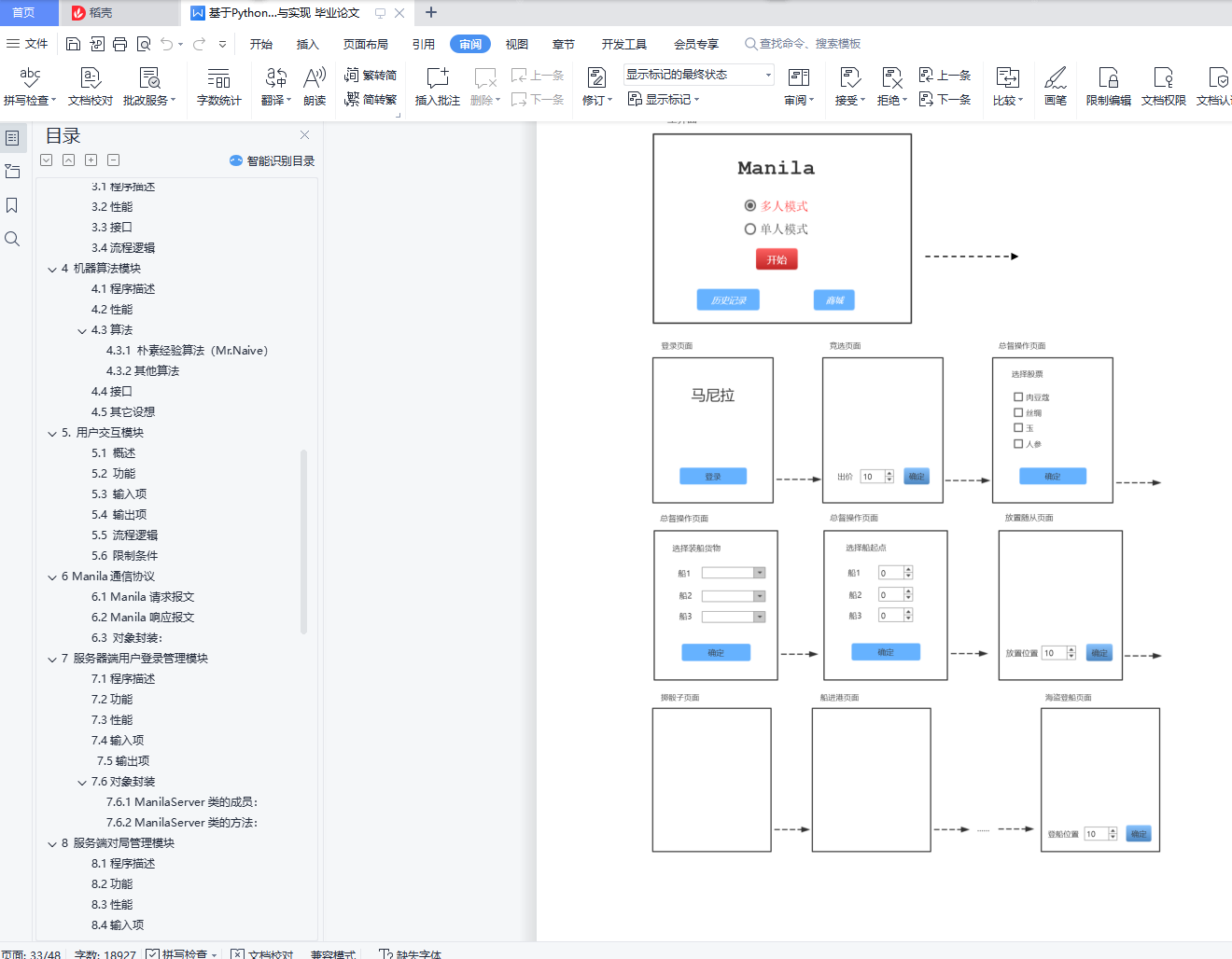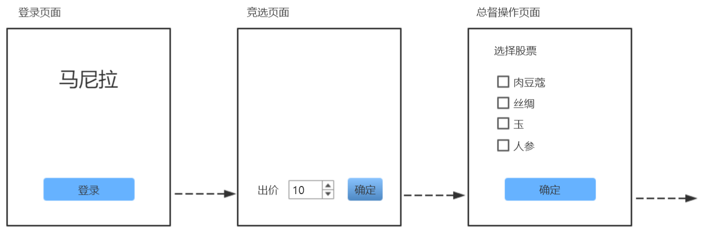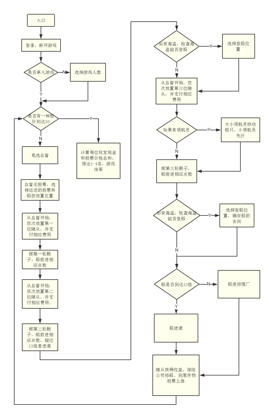 目录第一章 需求分析 41 引言 41.1编写目的 41.2背景 42 任务概述 42.1目标 42.2用户的特点 52.3假定和约束 53 需求规定 53.1对功能的规定 53.2对性能的规定 133.3输入输出要求 143.4数据管理能力要求 153.5故障处理要求 154 运行环境规定 154.1设备 154.2支持软件 15第二章 概要设计 161. 软件开发任务 161.1 开发目标 161.2 运行环境 161.3 需求概述 161.4 程序限制 172. 总体设计 172.1 总体结构 172.2 用户端模块 182.3 服务器端模块 182.4 处理流程 193. 数据结构 203.1 棋盘类 203.2 玩家类 213.3 历史记录 213.4 通讯数据 213.5 服务器端数据表 214. 模块设计 234.1 流程控制模块 234.2 用户接口模块 234.3 机器算法模块 254.4 对盘管理模块 265. 异常处理及其它 265.1 异常处理 265.2 安全性与维护 275.3 扩展功能 27第三章 详细设计 281 引言 281.1编写目的 281.2背景 281.3定义 281.4参考资料 282 程序系统的结构 293 流程控制模块 293.1程序描述 293.2性能 303.3接口 303.4流程逻辑 314 机器算法模块 334.1程序描述 334.2性能 334.3算法 344.4接口 354.5其它设想 355. 用户交互模块 355.1 概述 355.2 功能 365.3 输入项 365.4 输出项 365.5 流程逻辑 365.6 限制条件 386 Manila通信协议 386.1 Manila请求报文 386.2 Manila响应报文 386.3 对象封装: 397 服务器端用户登录管理模块 397.1程序描述 397.2功能 397.3性能 407.4输入项 407.5输出项 407.6对象封装 408 服务端对局管理模块 428.1程序描述 428.2功能 428.3性能 428.4输入项 428.5输出项 438.6对象封装 439 服务端用户注册模块 449.1程序描述 449.2功能 449.3性能 449.4输人项 459.5输出项 4510 服务器配置 4510.1 主机 4510.2 硬件环境 4510.3 软件环境 45第四章 桌游马尼拉软件的测试方案 461.概述 461.1背景 46说明: 46a.软件系统的名称:桌游马尼拉的PC端实现。 46b.任务提出者:“软件工程原理”课程教师黄舟 46开发者:软工第二小组成员() 46用户:软工课程教师、选课同学及其他可能的游戏玩家 46运行网络;广域网环境 46由于我们组是第一次开发软件,因此在开发过程中可能会出现较大问题并且影响用户体验,因而需要对软件进行测试。 461.2测试目的与用途 47目的:暴露软件中隐藏的错误和缺陷,以便用户在使用过程中有更好的体验,并且决定使用开发的软件作为娱乐工具。 47用途:找出软件开发过程中未注意到的漏洞,加以改正,更好地实现软件的服务功能。 472.系统需求 472.1功能需求 47具体可以参考需求说明文档。其中主要包括用户登录、用户管理、数据传输、游戏模式选择、竞选总督、总督操作、放置随从、掷骰子、船进港、领航员操作、海盗登穿、一般随从盈利、股票上涨、游戏结束、结算和抵押股票等功能。 472.2性能需求 47由于本软件为轻量级软件,而且供娱乐使用,而且希望模拟真实场景体验,因而规定时间特性要求,在网络带宽良好的情况下: 47响应时间:毫秒级 47更新处理时间;毫秒级 47数据的转换和传送时间;毫秒级 47电脑AI反应时间:秒级 47精度和有效时限的变化:在毫秒级的实现 47另外,还需要对用户的文本输入错误进行处理。 472.3其他需求 47服务器的数据管理需求:实现局域网内百级用户数据的管理。 47客户端的数据管理需求:实现对于历史游戏结果的保存管理,可达百次级别。 47输入数据主要为整形数据和鼠标的位置信息,需要对位置信息进行阈值处理。 47图形界面主要包括五个层次: 47登录界面:背景图、相应的玩家盈利信息和、“单人游戏”、“多人游戏”、“历史记录”、“成就”、“商城”五大按键。 47“单人游戏”、“多人游戏”:马尼拉桌游背景图、可移动船只、船员、四位玩家、道具面板、资金输入面板、船员放置位置。游戏完成若达成成就自动弹出提示信息。 47“历史记录”:往期游戏数据面板和个人评价等。 47“成就”:完成任务点亮图标。 47“商城”:人物形象、新的货物等,玩游戏获得资源,资源用于在商城购买 473.测试计划 473.1测试进度 473.2测试环境 483.3测试工具 484.测试方案 484.1测试项目确认 484.2测试分析 484.3测试用例设计 50由于服务器出了部分问题,没有调试畅通,所以用户管理、用户登陆和数据传输没有办法测试。其余部分没有比较好的组合,于是就逐项测试,没有整体测试。 504.4非功能测试用例 51第一章 需求分析1引言1.1编写目的本文旨在对“桌游马尼拉的PC端实现”项目的需求进行详细的分解分析和阐述,明确后续系统开发所要解决的问题和工作方向,并作为项目评价和验收的依据之一。本文可供2018年“软件工程原理”课程的教师、选课同学及未来系统用户参阅。1.2背景说明:a.待开发的软件系统的名称:桌游马尼拉的PC端实现。b.任务提出者:“软件工程原理”课程教师黄舟开发者:软工第二小组成员()用户:软工课程教师、选课同学及其他可能的游戏玩家运行网络;局域网环境