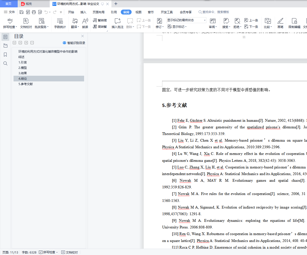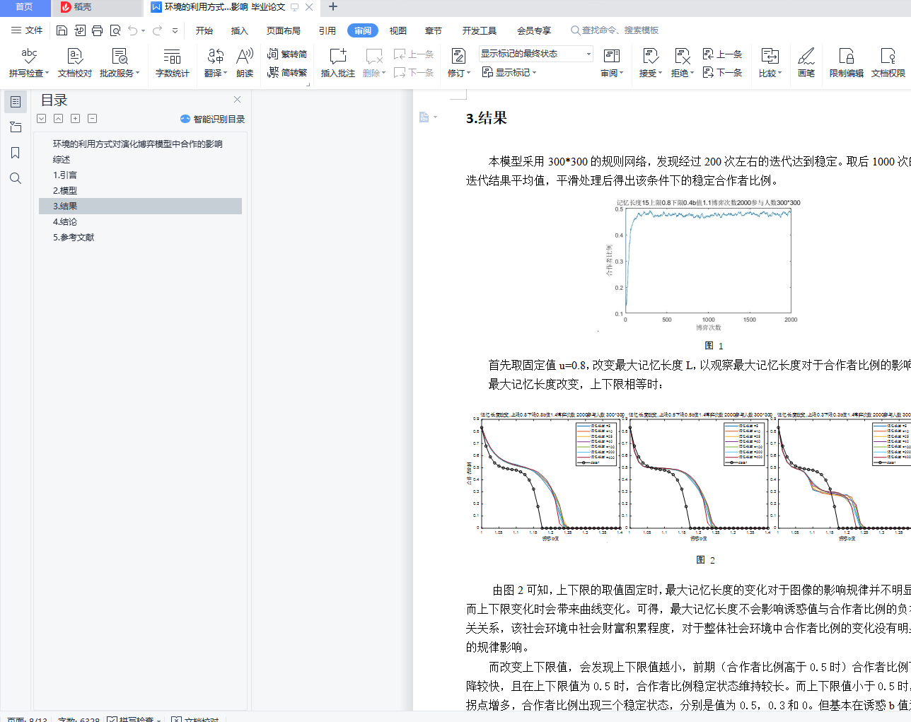 环境的利用方式对演化博弈模型中合作的影响目录环境的利用方式对演化博弈模型中合作的影响 1综述 11.引言 12.模型 43.结果 104.结论 135.参考文献 14综述本文在基于方格上的演化囚徒困境模型上,增加了环境影响因素,即研究了一个诱惑值可随着时间变化的囚徒博弈。当个体与其邻居交互时可以遵循两种策略:合作策略(C)和背叛(D)。随机序列更新的参与者依据费米原则模仿邻居策略,其概率取决于收益的差异。利用蒙特卡罗模拟,通过增加变量改变诱惑值,研究了其对于合作者比例c的影响。由合理假设赋予了环境影响因素现实含义,并由结果结合现实含义解释,最终构造了基于个体理性及宏观政策调控下的博弈模型。关键词:囚徒困境 演化博弈 记忆策略 记忆长度
