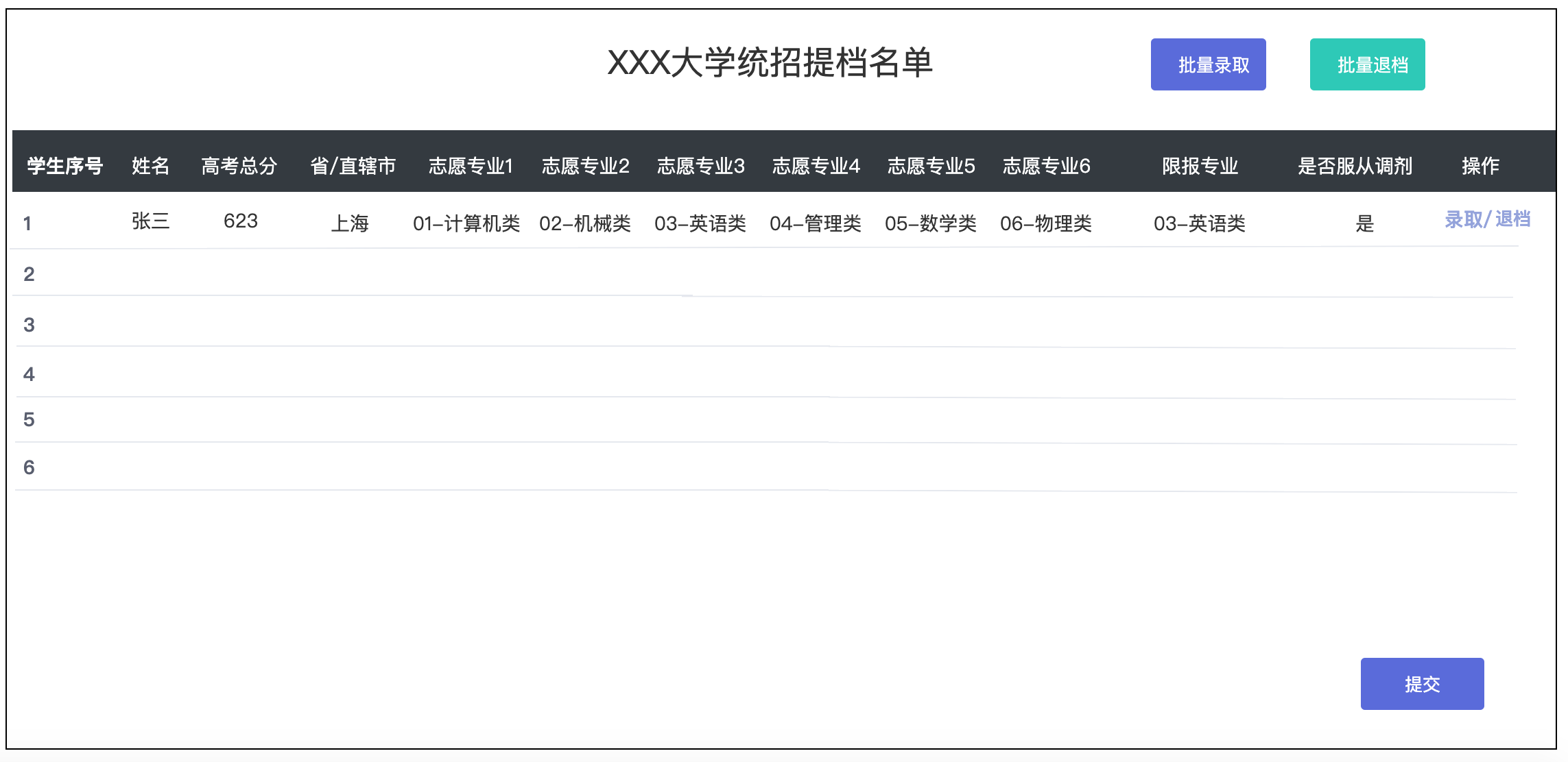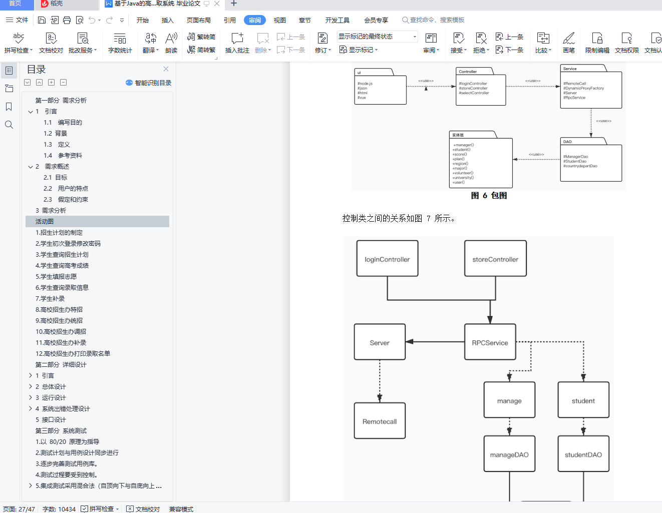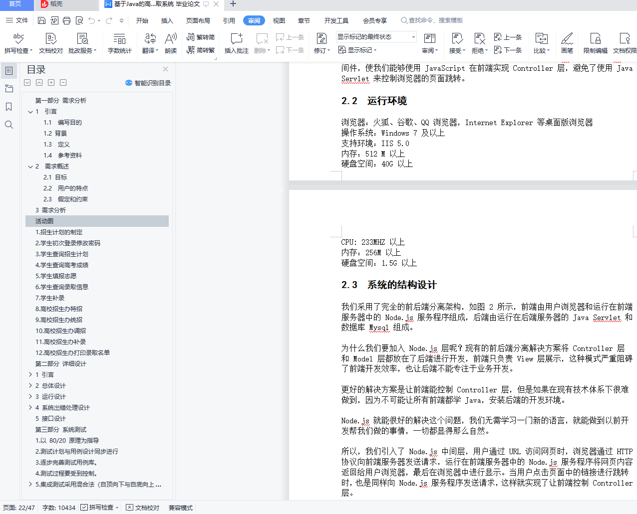 目录第一部分 需求分析 21 引言 21.1 编写目的 21.2 背景 21.3 定义 21.4 参考资料 22 需求概述 22.1 目标 22.2 用户的特点 32.3 假定和约束 33 需求分析 3活动图 121. 招生计划的制定 122. 学生初次登录修改密码 133. 学生查询招生计划 134. 学生查询高考成绩 145. 学生填报志愿 146. 学生查询录取信息 157. 学生补录 158. 高校招生办特招 169. 高校招生办统招 1610. 高校招生办调招 1711. 高校招生办补录 1712. 高校招生办打印录取名单 18第二部分 详细设计 201 引言 201.1 编写目的 20本文档的预期读者为: 201)项目的责任人和管理者; 202)参与概要设计和需求确认的有关业务人员; 203)项目的开发人员、测试人员; 201.2 背景 211.3 定义 211.4 参考资料 212 总体设计 212.1 设计概述 212.2 运行环境 222.3 系统的结构设计 232.4 问题域类模型 252.5 系统的界面设计 282.6 数据存储设计 332.7 尚未解决的问题 363 运行设计 363.1 运行模块组合 363.2 运行控制 363.3 运行时间 374 系统出错处理设计 374.1 出错信息 374.2 补救措施 384.3 系统维护设计 395 接口设计 39第三部分 系统测试 401. 以 80/20 原理为指导 442. 测试计划与用例设计同步进行 443. 逐步完善测试用例库。 444. 测试过程要受到控制。 445. 集成测试采用混合法(自顶向下与自底向上相结合)进行测试 44 硬件需求 48第一部分 需求分析1 引言1.1 编写目的编写需求分析报告的目的在于记录本次系统开发中所收集到的需求情况,并指导以后的软件设计阶段。本说明书主要给小组开发人员做开发指导,作为用户与开发人员交流的依据,读者为开发人员和用户。1.2 背景开发软件名称:考试招生录取系统用户:各省市高考考生,国家招生管理部门和各大高校招生办提出和编写人员:本项目由软件协同设计教师赵逢禹老师提出,由开发小组开发。1.3 定义统招:高中毕业报考大学的考生依照《全国普通高等学校(普通中等专业学校)招生计划》经过选拔考试后统一录取的招生形式;特招:按照国家相关文件规定,对具有一定技艺特长,且达到国家规定标准的学生实行特定的招收政策,特长生可以享受一定范围内的降分招录的待遇;调招:统招基础上,考生选择服从调剂后,被调剂到其他专业录取;补录:一些院校在第一次招生的时候没有招满学生,进行的第二次录取;退档:当录取工作完成以后,系统必须要退档(即将未录取的考试档案退还给招生办);