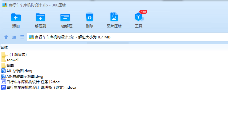 Key words: bicycle garage; mechanism design; CAD drawing; mechanical calculation; kinematic analysis; spatial layout; optimization suggestions