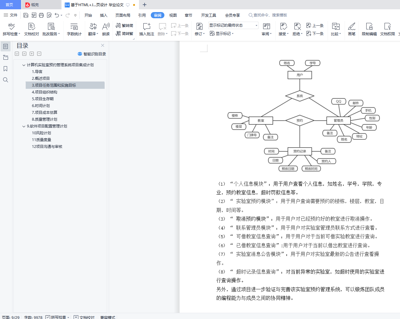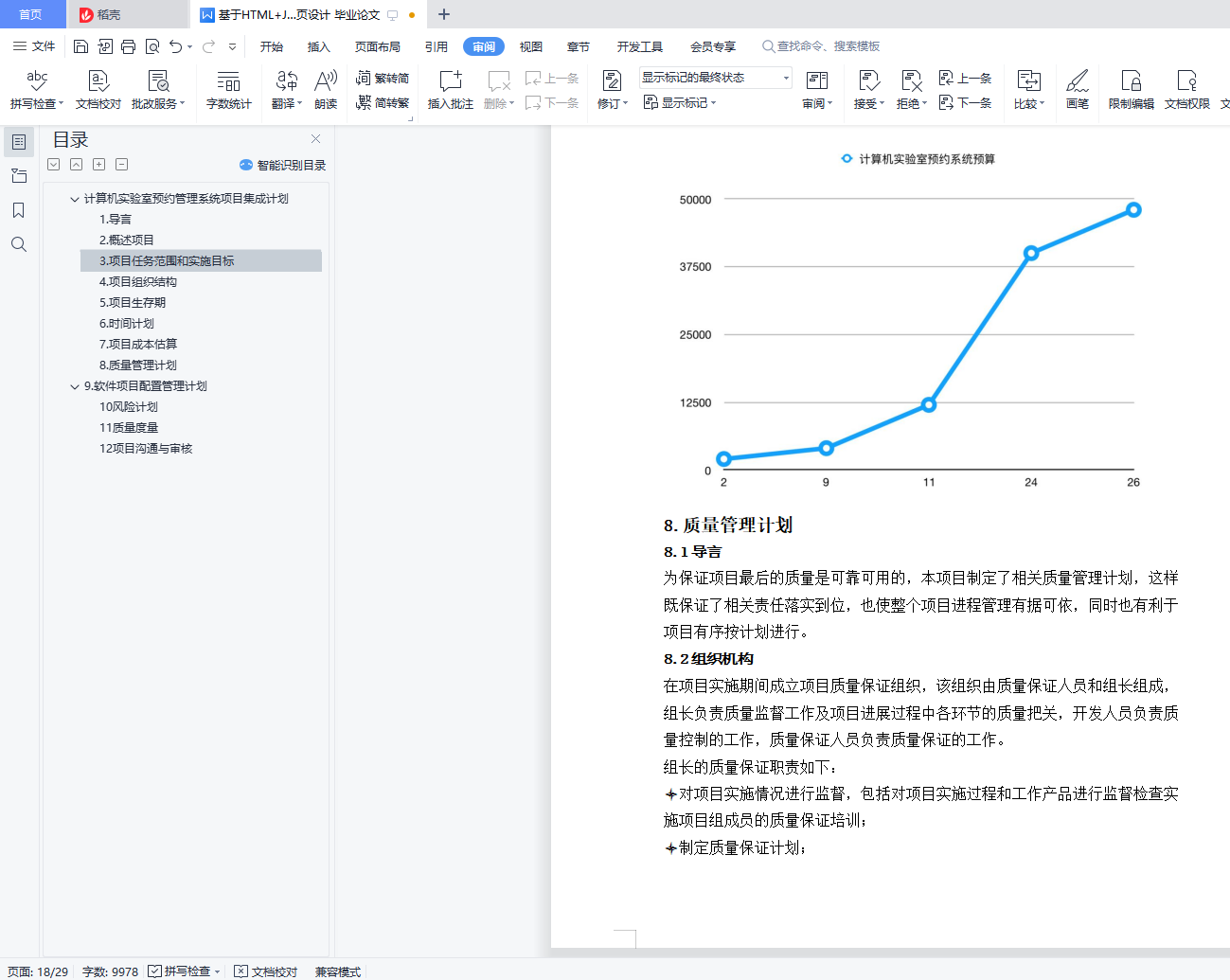 计算机实验室预约管理系统项目集成计划1.导言1.1目的1.2范围1.3缩写说明1.4术语定义1.5引用标准1.6版本更新记录2.项目概述3.项目任务范围和项目目标3.1项目目标3.2项目任务范围4.项目组织结构5.项目生存期6.时间计划7.项目规模估算8.质量管理计划8.1导言8.2组织机构8.3.质量目标8.4.质量策略8.5.质量保证活动8.5.1.项目审计8.5.2 过程评审8.6.质量控制活动8.7.记录的收集、维护和保存9.项目成本估算9.1. 组织及职责9.2 配置管理环境9.3.1配置库目录结构9.3.2用户及权限9.4. 配置管理活动10.风险计划11质量度量12项目沟通与审核1.导言1.1目的为了提高高效实验室的利用率,以及提高学生进行实验的积极性,同时提高实验室利用率,使同学们更合理的利用教学资源,我们决定开发实验室预约管理系统。该系统主要针对传统的人工管理效率低下、教学资源得不到有效利用等缺点。该系统主要实现了学生根据学习的的实际情况进行教学实验的申请,查看当前实验室占用情况以及可预约时间。系统管理员管理用户信息、管理实验室开放时间以及发布系统公告,同时该系统提供了简单方便地用户界面。本系统主要使用 JavaScript、CSS、HTML 技术,实现前端功能。