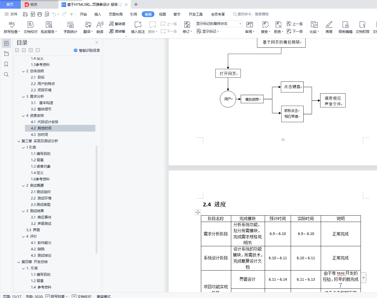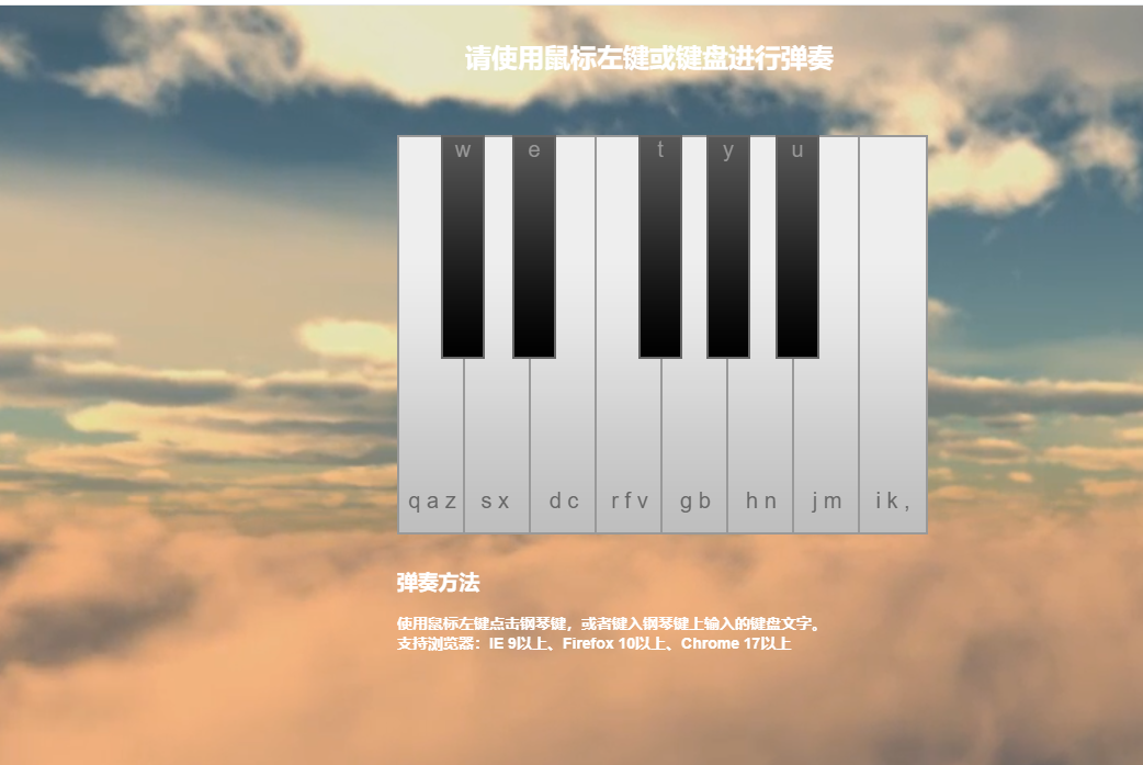目 录第一章 概要设计 31引言 31.1编写目的 31.2背景 41.3定义 41.4参考资料 42任务概述 42.1目标 42.2运行环境 42.3需求概述 53总体设计 53.1基本设计概念和处理流程 53.2程序结构 53.3功能分配 64接口设计 64.1用户接口 64.2外部接口&内部接口 65运行设计 65.1运行模块组合 65.2运行控制 75.3运行时间 76系统出错处理设计 76.1出错信息 76.2补救措施 7第二章 需求分析 71引言 71.1项目背景 71.2目的 71.3读者对象 81.4定义 81.5 参考资料 82 总体说明 82.1 目标 82.2 用户的特点 82.3 项目环境 93 需求分析 93.1 基本构造 93.2 整体细节 94 进度安排 104.1 代码设计安排 104.2 其他时间 104.3 总时间 10第三章 实现及测试分析 111引言 111.1编写目的 111.2背景 111.3读者对象 111.4定义 111.6 参考资料 112 测试概要 112.1测试组织 122.2 测试环境 122.3测试类型 123 测试结果 123.1 响应事件 123.2 声音测试 133.3 界面 134 评价 134.1 软件能力 134.2 缺陷 134.3 测试结论 13第四章 开发总结 131. 引言 131.1编写目的 131.2背景 131.4 参考资料 142. 实际开发结果 142.1 产品 142.2 主要功能和性能 142.3 基本流程 142.4 进度 152.5 费用 153. 开发工作评价 153.1 对生产效率的评价 153.2 对产品质量的评价 153.3 对技术方法的评价 163.4 出错原因的分析 164.经验和教训 16第一章 概要设计1引言1.1编写目的为明确基于网页的模拟钢琴的系统结构、安排项目规划与进度、制定详细测试计划、组织软件开发与测试,特撰写本文档。本文档供项目经理、设计人员、开发人员参考。1.2背景开发软件名称:基于网页的模拟钢琴用户:希望能使用电脑和键盘简单试玩钢琴的用户本系统采用B/S模式,联合运用HTML5、CSS3和JavaScript多种典型网页设计技术完成系统,并且兼容了当前市场上主流的大多数浏览器。