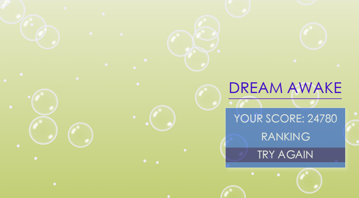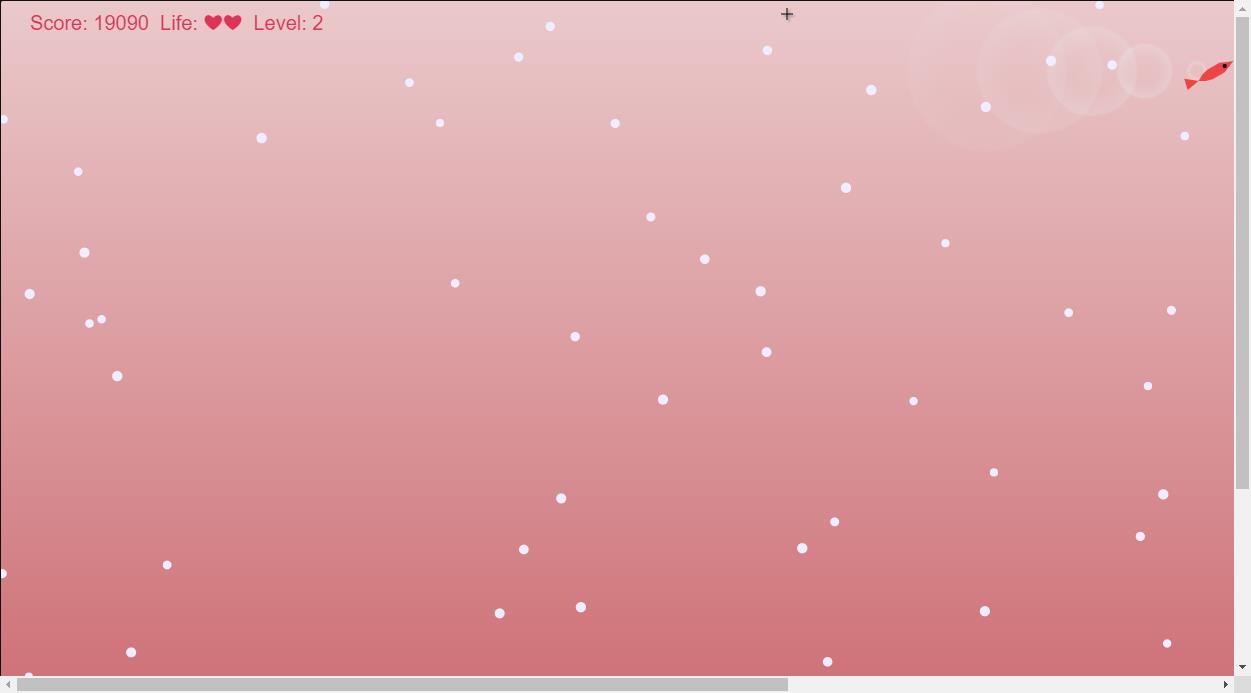 移动鼠标控制屏幕上的小鱼,需要躲避飞来的各种物体(下称"子弹")。若吃到钻石,可以随机获得一种特殊能力。游戏并没有尽头,设有8个level,难度依次递增。开始时小鱼共有五条生命,当这些生命耗尽时游戏结束。