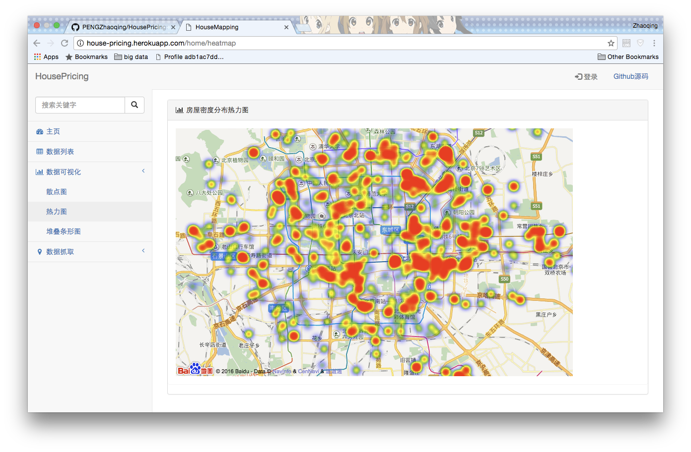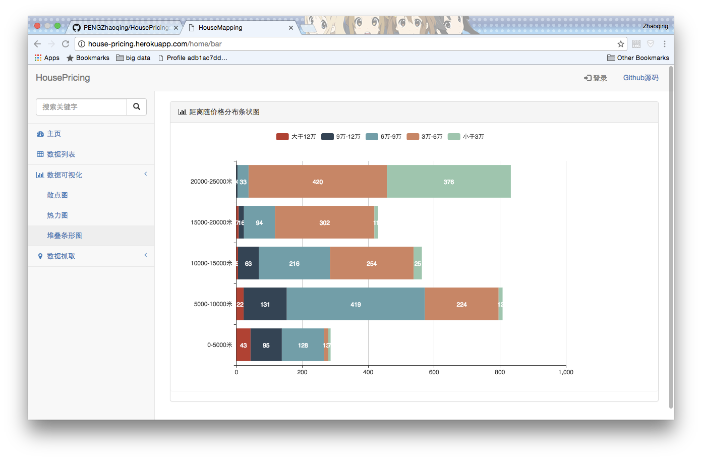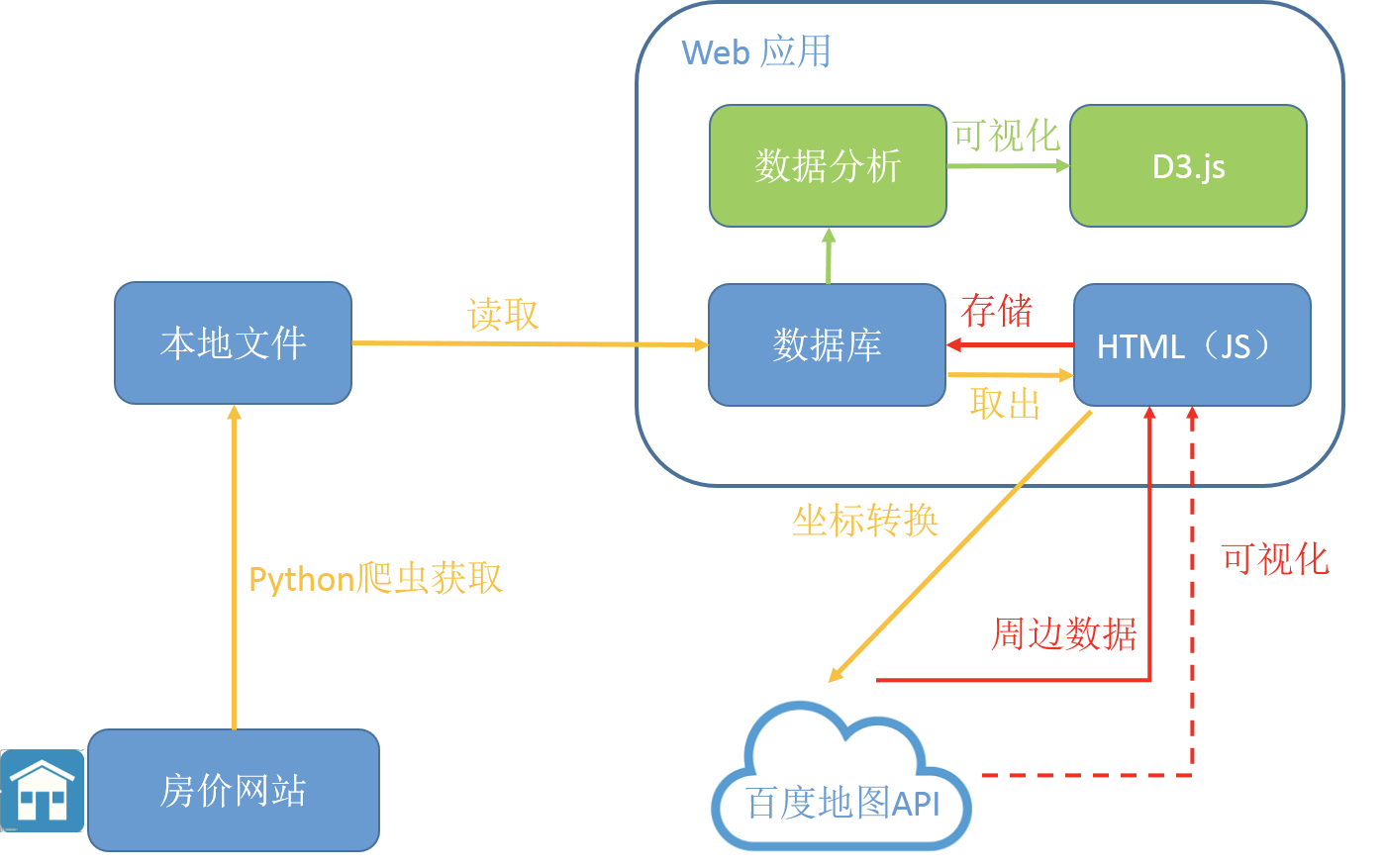 基于python实现的房价的可视化预测系统目录1. 面向用户(买房者、卖房者) 12. 面向开发者(数据挖掘工程师,数据可视化分析师等) 13.项目设计 23.1. 数据挖掘 (Done) 23.2. 建立模型对数据进行分析(Under Construction) 23.3. 数据可视化(Partial done) 24.目前进展(更新) 2房屋预测功能具体应用场景: 25.截图 36.数据说明 57.开发 68.Docker运行 61. 面向用户(买房者、卖房者)对于买家,在主页面通过各种筛选选出符合条件的房屋,进入各个房屋的详细页面,应用通过各种可视化手段让用户从交通、教育、工作、交通、生活等方面对这套房子进行评估。未来工作:1.加入房屋预测功能2.加入相似房屋推荐功能