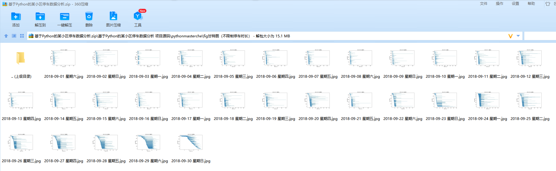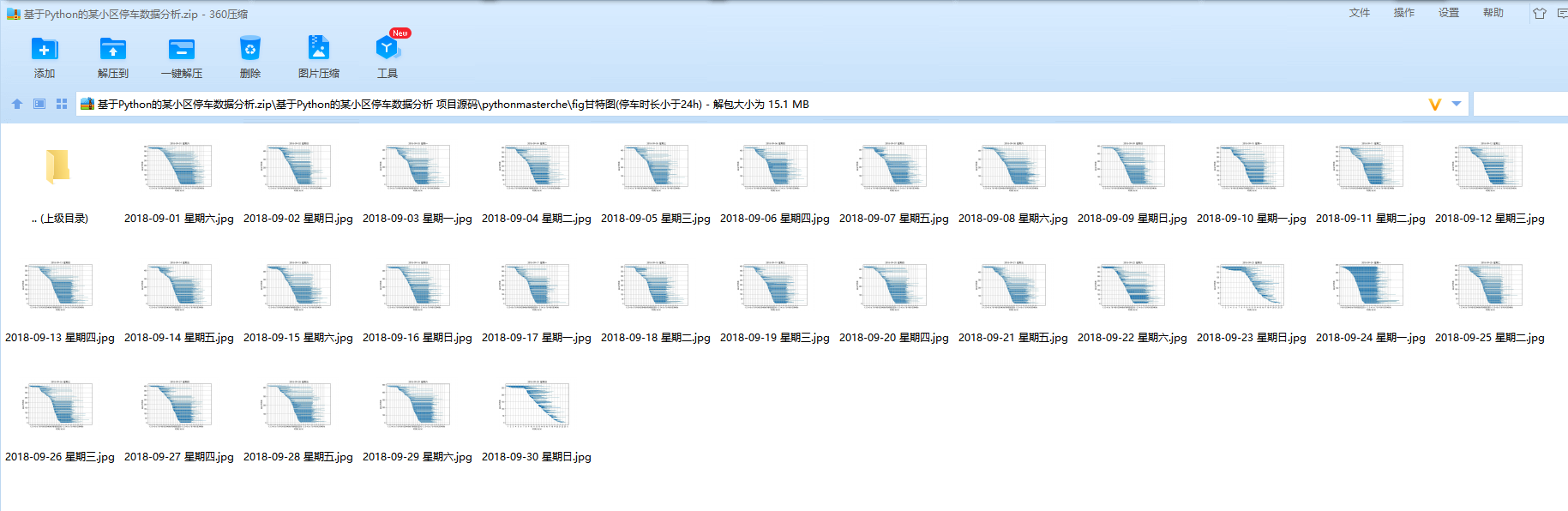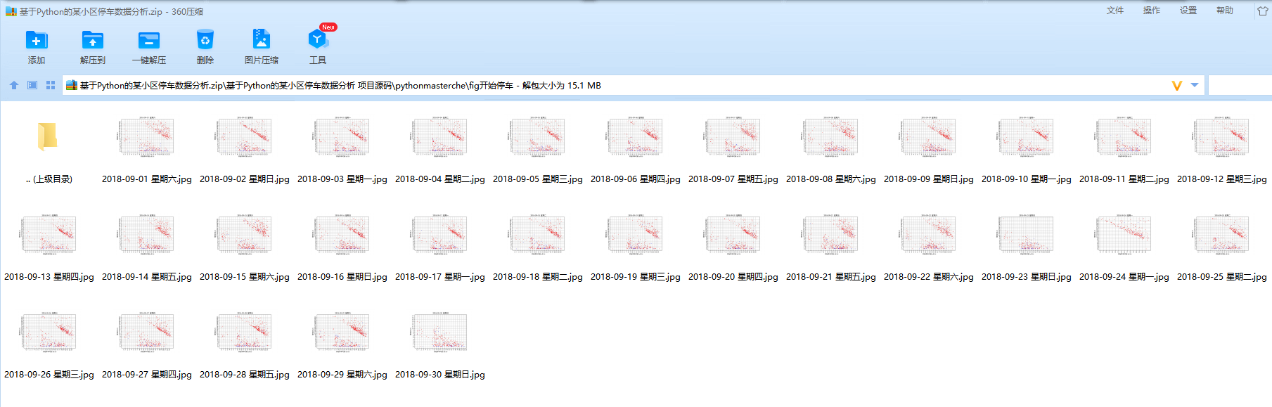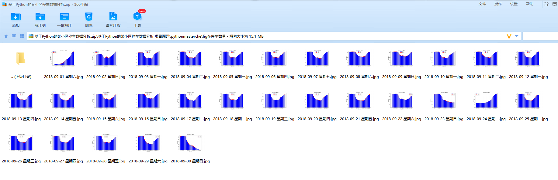 01-30共30天的excel表格。后来处理时发现23 和24重复了,于是将24.xls删去。每一个表格内记录了当天出场的车的停车信息,如下图