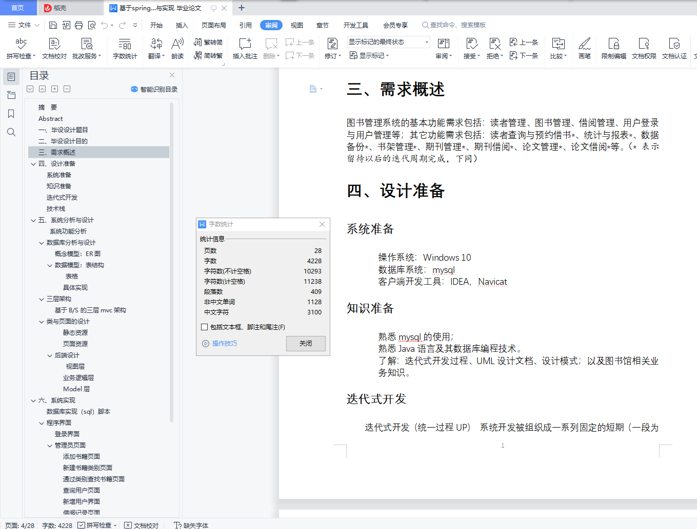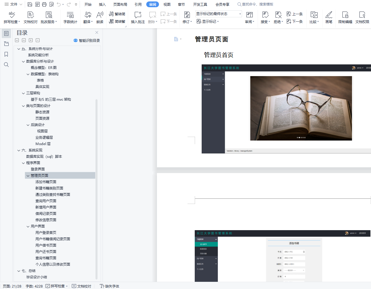 摘 要随着网络技术的发展、计算机应用水平的提高的扩大,原来系统的时效性、数据的正确性、操作的方便性上都存在不足,已影响到系统的正常使用。经过考察比较,决定利用自己的力量对智能化图书查询系统重新设计,使系统能利用软件开发技术的成果,方便图书的管理。智能化图书查询系统是典型的信息管理系统,本文系统地介绍了智能化图书管理系统开发所需要用到的技术,和设计中遇到的问题及解决方法以及提高当前应用程序的工作性能。 利用各种面向对象的开发工具,首先在短时间内建立系统应用原型,然后对初始原型系统进行需求迭代,不断修正和改进,直到形成用完整的可行系统。 本次毕业设计利用IDEA开发工具和MYSQL数据库来开发这个智能化图书查询系统,使用SpringBoot 2.3结构框架,前端用到了Thymeleaf、Layui、Ajax、JQuery,后端用到了springboot , mybatis,图书管理系统的基本功能需求包括:读者管理、图书管理、借阅管理、用户登录与用户管理等;其它功能需求包括:读者查询与预约借书、统计与报表、数据备份、书架管理、期刊管理、期刊借阅、论文管理、论文借阅等。关键词: SpringBoot 2.3;图书管理;管理系统;Java;MySQLAbstractWith the development of network technology and the improvement of computer application level, the timeliness of the original system, the data correctness and the convenience of operation are insufficient, which has affected the normal use of the system.After investigation and comparison, it is decided to use its own power to redesign the intelligent book query system, so that the system can use the achievements of software development technology and facilitate the management of books.Intelligent book query system is a typical information management system.This paper systematically introduces the technologies needed for the development of intelligent book management system, the problems and solutions encountered in the design, and improves the work performance of the current application.Using a variety of object-oriented development tools, the system application prototype is established first in a short time, and then the demand iteration of the initial prototype system is constantly corrected and improved until a complete viable system is formed.The graduation design uses the IDEA development tool and the MYSQL database to develop this intelligent book query system, Using the SpringBoot 2.3 structural framework, The front-end is used in Thymeleaf, Layui, Ajax, JQuery, The springboot was used at the back end, mybatis, The basic function needs of the book management system include: reader management, book management, borrowing management, user login and user management, etc.; Other functional requirements include: reader inquiry and appointment of book borrowing, statistics and reports, data backup, bookshelf management, journal management, journal borrowing, paper management, paper borrowing, etc.Key words: SpringBoot 2.3; book management; management system; Java; MySQL目录摘 要 IAbstract II一・、毕设设计题目 1二、毕设设计目的 1三、需求概述 1四、设计准备 1系统准备 1知识准备 1迭代式开发 1技术栈 2五、系统分析与设计 3系统功能分析 3数据库分析与设计 3概念模型:ER图 4数据模型:表结构 4三层架构 8基于B/S的三层mvc架构 8类与页面的设计 9前端设计 9后端设计 10六、系统实现 16数据库实现(sql)脚本 16程序界面 18登录界面 18管理员页面 18用户界面 22七、总结 25毕设设计小结 25