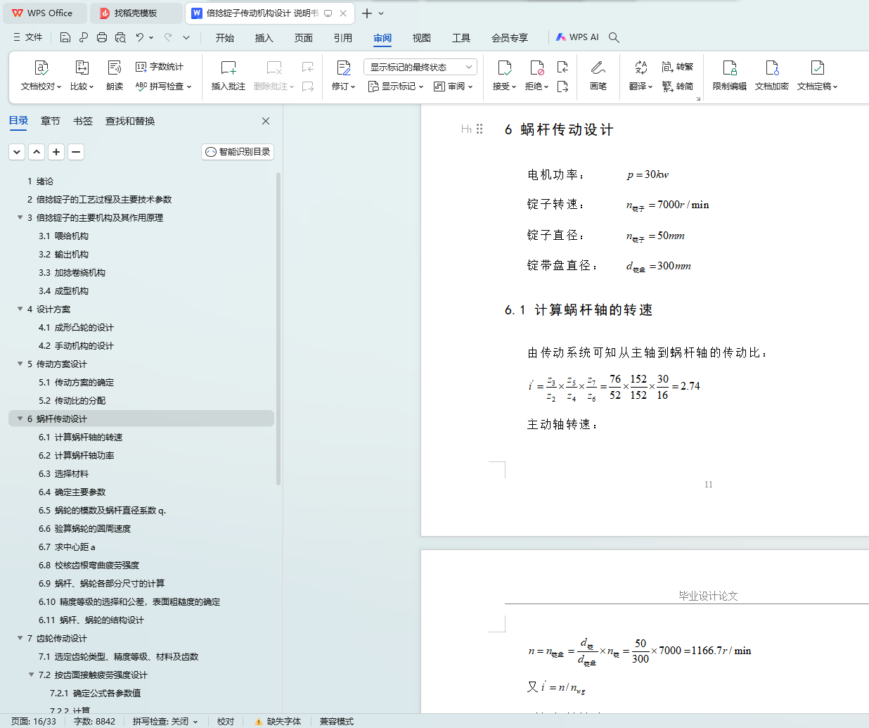 6.9 蜗杆、蜗轮各部分尺寸的计算