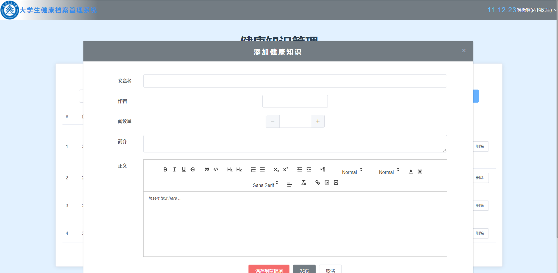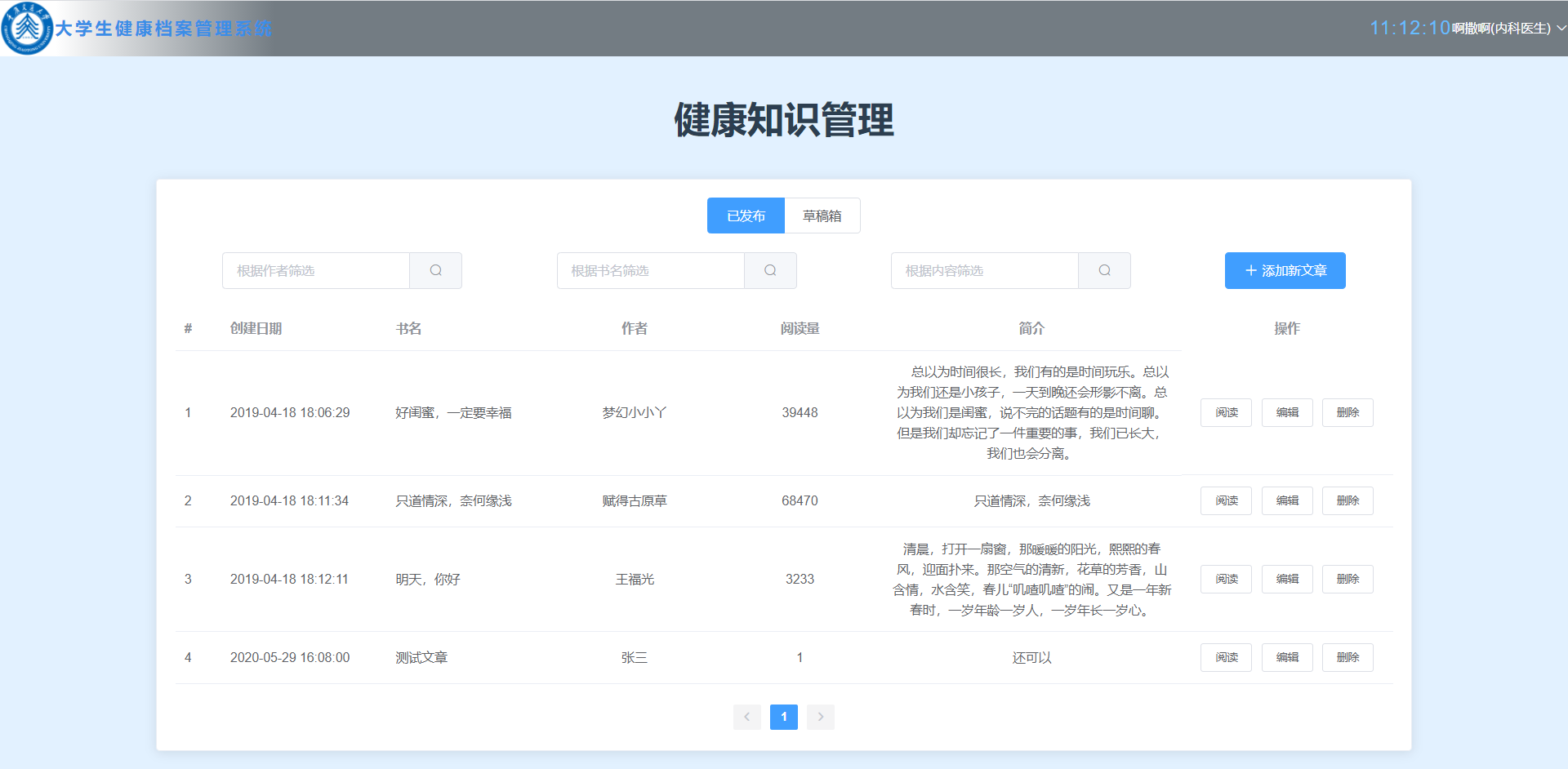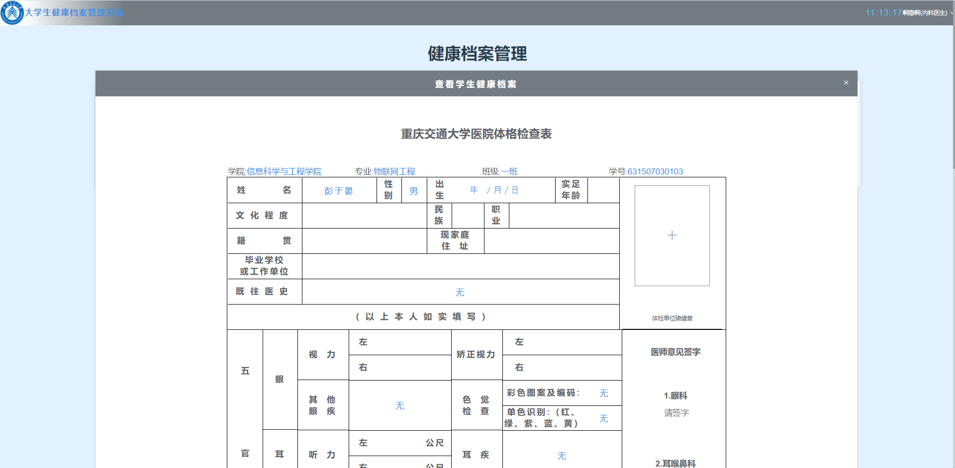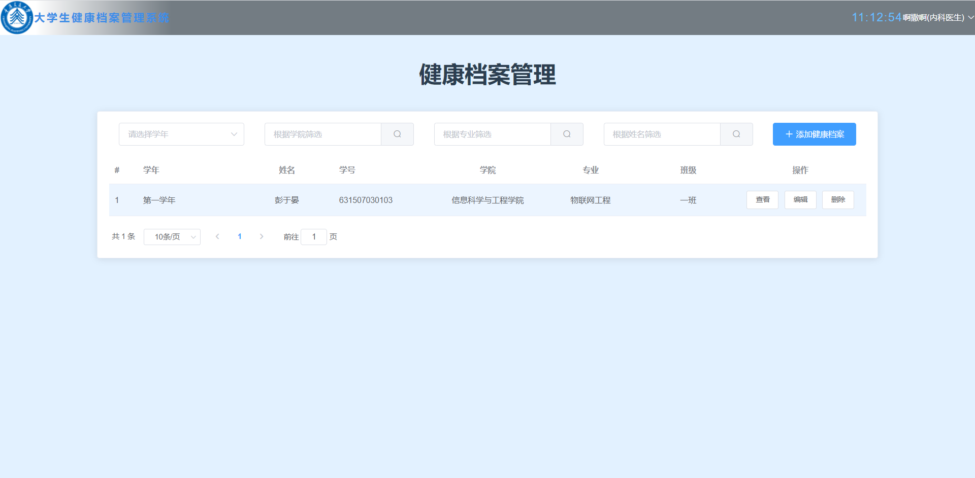 基于SpringBoot框架的大学生电子健康档案管理系统 毕业论文+项目源码及数据库文件