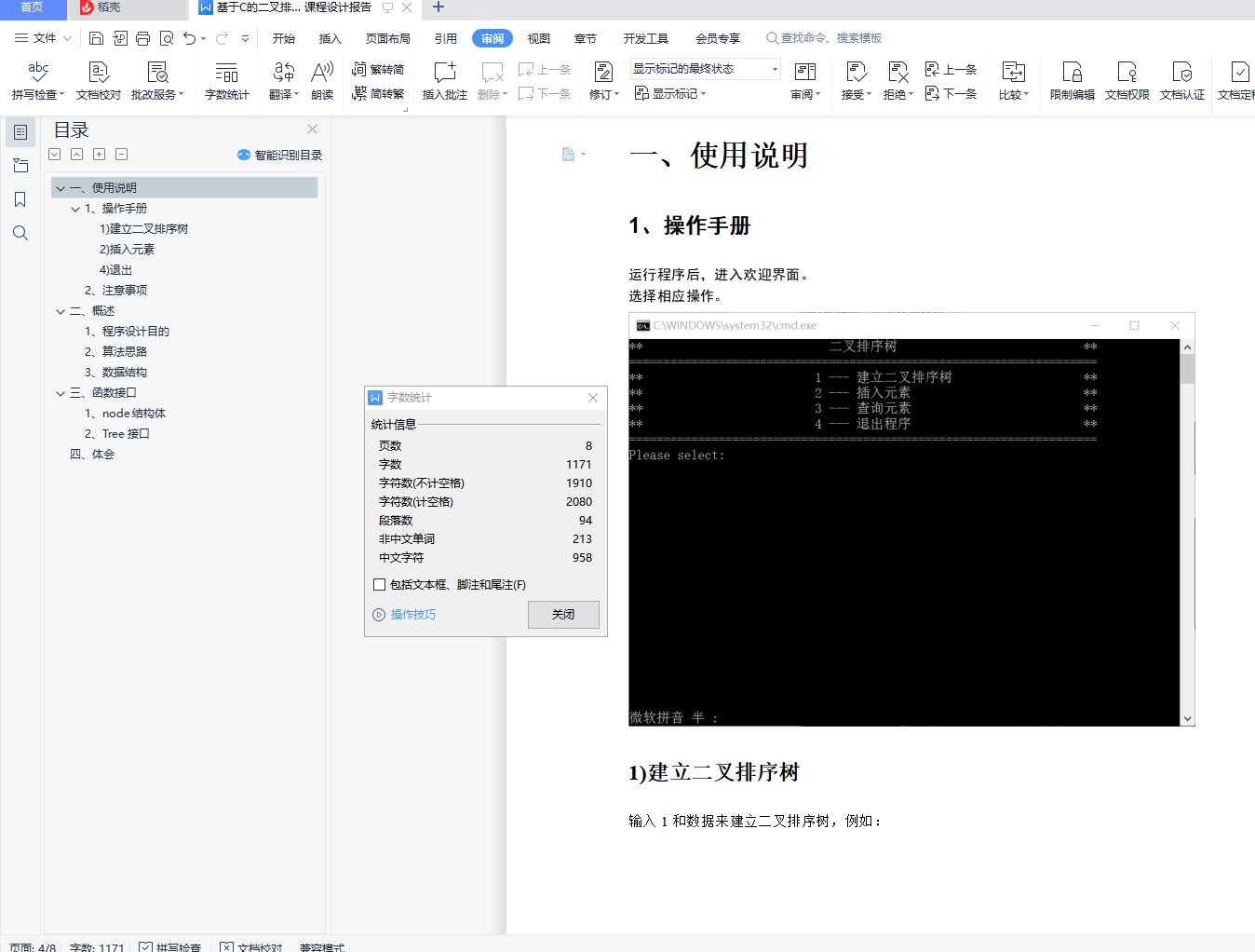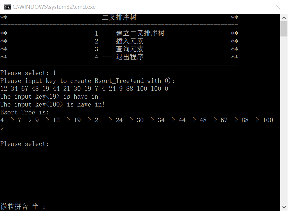 基于C的二叉排序树实现数据结构实验 课程设计报告+课程设计代码