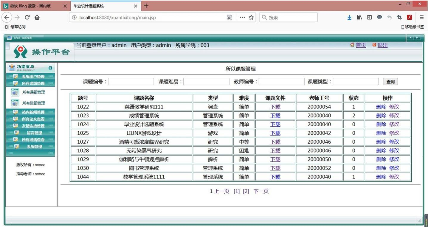 基于JSP的毕业设计选题管理系统设计与实现 毕业论文+项目源码及数据库文件