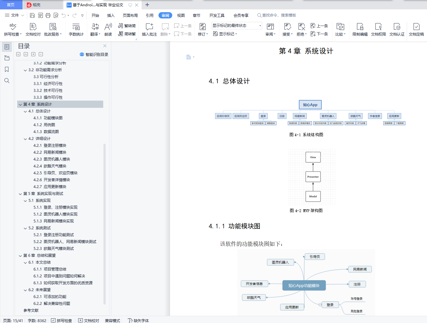 摘要5G网络就快到来了,4G网络已经基本上覆盖了,便捷的网络环境为安卓手机添加更多的精彩丰富的内容提供了良好的平台和基础。目前安卓开发正对我们的生活造成巨大的影响,我们的生活已经离不开如微信、QQ、微博等应用。 这些应用极大的便利了我们的生活,为我们的工作生活带来了很多的乐趣,丰富和充实了我们的生活。该系统是正是利用Android开源平台开发的一款娱乐APP,叫做知心App,利用当今主流的编程语言Java进行代码的编写,利用Google最新开发的Android Studio为开发工具,通过了解安卓平台的系统架构和应用程序开发流程,最终成功开发出了该款应用。该款应用主要包括了人脸识别登录、网易新闻、欧酷天气、图灵机器人、作者个人信息、应用更新等模块。此款应用采用了ButterKnife依赖注入技术、Gson数据解析框架、OkHttp网络处理框架、科大讯飞语音识别技术、图灵机器人技术、一登刷脸登录技术、Bmob登录注册技术、蒲公英应用发布以及自动更新等技术。此款应用严格按照软件开发标准流程进行设计与开发,代码结构清晰,用户体验较好。关键词:Android;Android Studio;人脸识别;语音识别;图灵机器人;Abstract5G network is coming soon, 4G network has basically covered, convenient network environment for Android phones to add more wonderful rich content provides a good platform and foundation. At present, Android development is having a huge impact on our lives, our lives have been inseparable from applications such as wechat, QQ, microblogging. These applications greatly facilitate our lives, bring a lot of fun to our work life, enrich and enrich our lives. This system is just an entertainment app developed by using Android open source platform, called bosom app. it is successfully developed by using Java, the mainstream programming language, and Android studio, which is newly developed by Google, as a development tool, through understanding the system architecture and application development process of Android platform. This application mainly includes face recognition login, Netease news, cool weather, turing robot, author's personal information, application updates and other modules. This application uses button knife dependency injection technology, gson data analysis framework, ok http network processing framework, hkust xunfei speech recognition technology, turing robot technology, a brush face registration technology, bmob registration technology, dandelion application release and automatic update technology. This application is designed and developed in strict accordance with the standard process of software development, with clear code structure and good user experience.Key Words: Android; Android Studio; Face Recognition; Speech Recognition; Turing Robot;目录第1章 绪论 11.1 课题背景 11.1.1 人工智能 11.1.2 大数据 11.2 目的意义 21.3 论文主要工作 2第2章 相关技术和理论基础 32.1 技术与理论基础1 32.1.1 ButterKnife依赖注入框架 32.1.2 Gson框架 42.1.3 OkHttp网络框架 42.2 技术与理论基础2 42.2.1 科大讯飞语音识别与图灵机器人 52.2.2 Bmob后端服务平台以及蒲公英应用平台 52.2.3 GitHub项目管理工具 5第3章 系统分析(需求分析) 73.1功能需求分析 73.1.1 用户需求分析 73.1.2 功能需求分析 73.2 非功能需求分析 83.3可行性分析 83.3.1 经济可行性 83.3.2 技术可行性 83.3.3 操作可行性 8第4章 系统设计 94.1 总体设计 94.1.1 功能模块图 94.1.2 用例图 104.1.3 数据流图 104.2 详细设计 104.2.1 登录注册模块 114.2.2 网易新闻模块 114.2.3 图灵机器人模块 114.2.4 欧酷天气模块 114.2.5 引导页、欢迎页模块 124.2.6 开发者详情模块 124.2.7 应用更新模块 12第5章 系统实现与测试 135.1 系统实现 135.1.1 登录、注册模块实现 135.1.2 图灵机器人模块实现 165.1.3 网易新闻模块实现 195.2 系统测试 205.2.1 登录注册功能测试 205.2.2 图灵机器人、网易新闻模块测试 225.2.3 欧酷天气模块测试 24第6章 总结和展望 266.1 本文总结 266.1.1 项目管理总结 276.1.2 项目中遇到问题如何解决 276.1.3 如何获取开发方面的优质资源 276.2 未来展望 276.2.1 可添加的功能 276.2.2 解决兼容性问题 27参考文献 28附录 29致谢 35