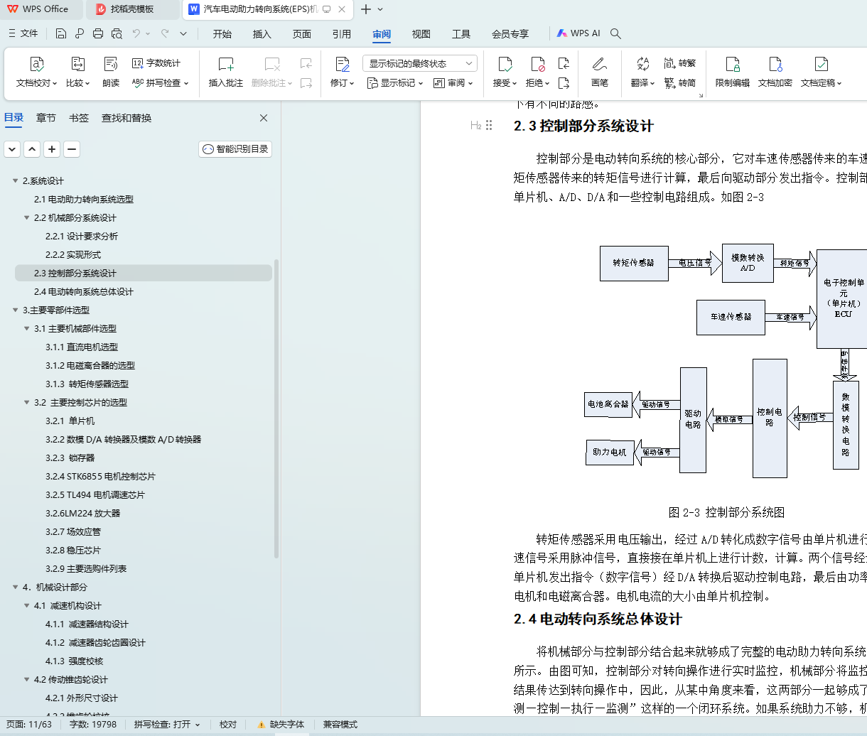 2.4电动转向系统总体设计 7