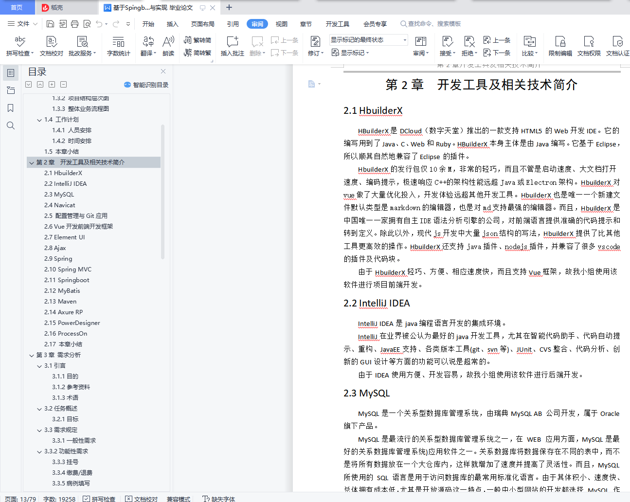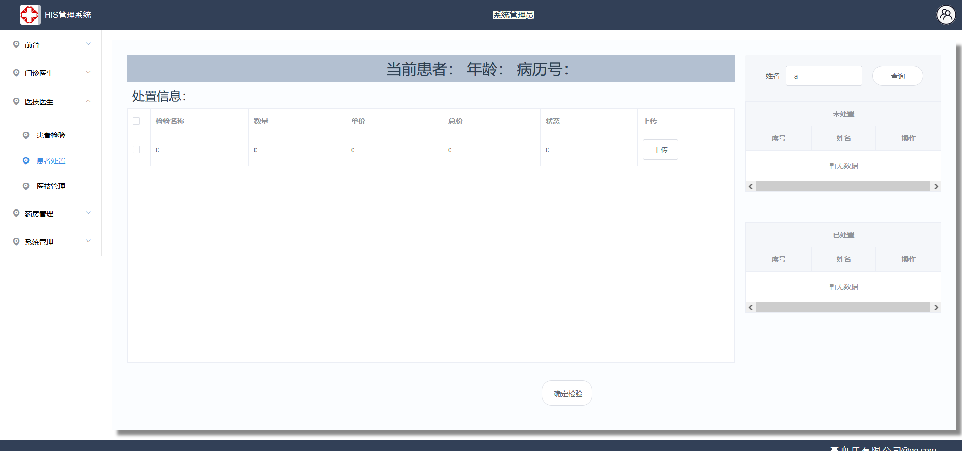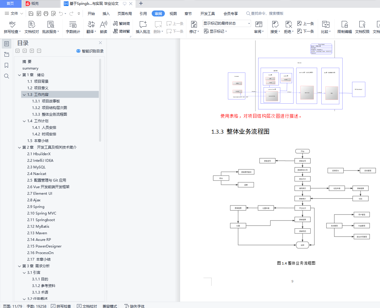 摘 要医院门诊信息管理系统是根据医院的门诊部分以及门诊部分配套的前台、医技、药房等部分的实际情况进行开发编写的一套全方位的管理系统。它的主要目的是方便医院对于门诊部分以及其配套的一些子部份进行集中管理,方便医生的看诊过程和患者的就诊过程,提高医生的工作效率以及患者的满意度。本系统的前端主要使用了Vue框架、Element UI和AJAX技术。Vue采用自底向上增量开发的设计。Vue 的核心库只关注视图层,并且非常容易学习,也非常容易与其它库或已有项目整合。Element UI则具有一致性、优化反馈、高效率和可控的优点。项目后端主要使用了Spring等一系列框架和MyBatis以及Maven。这一套技术易于学习、操作和管理。数据库方面则是使用了MySQL数据库以及Navicat数据库管理工具,轻量,易于管理。本系统基本实现了项目需求中提出的各项内容,主要实现了前台部分、门诊医生部分、医技医生部分、药房部分和系统管理部分五个子系统。其中前台部分包含了现场挂号、退号、费用查询、收费退费四个子模块;门诊医生部分包含了病历首页、检验申请、门诊确诊、处置申请、药物处方、费用查询六个子模块;医技医生部分包含了患者检验、患者处置、医技管理三个子模块;药房管理部分包含出药和药品管理两个子模块;系统管理部分包含科室管理、医生排班管理、用户管理三个子模块。本文将从所应用的技术、具体的实现、完成的功能、在系统中的作用等方面,对我们实现的医院门诊管理系统进行详细的描述。关键词HIS医院信息系统;前后端分离;VUE;SpingbootsummaryThe outpatient information management system of the hospital is an all-round management system developed and written according to the actual situation of the outpatient part of the hospital and the supporting reception desk, medical technology, pharmacy and other parts of the outpatient part.Its main purpose is to facilitate the hospital to conduct centralized management of the outpatient department and its supporting subsidiaries, so as to facilitate the consultation process of doctors and the treatment process of patients, and improve the work efficiency of doctors and patient satisfaction.The front end of this system mainly uses the Vue framework, Element UI, and AJAX technologies.The Vue uses a bottom-up incremental development design.Vue's core library focuses only on the view layer and is very easy to learn and easily integrate with other libraries or existing projects.Element UI has the advantages of consistency, optimized feedback, high efficiency, and control.The backend of the project mainly uses a series of frameworks like Spring and MyBatis as well as Maven.This set of technologies is easy to learn, operate, and manage.In the database side, MySQL database and Navicat database management tools are lightweight and easy to manage.The system basically realizes the contents proposed in the project needs, mainly realizing five sub-systems: front desk part, outpatient doctor part, medical technology doctor part, pharmacy part and system management part.The front desk part includes four sub-modules: field registration, withdrawal, fee inquiry and fee refund; outpatient doctor part includes home page, inspection application, outpatient diagnosis, treatment application, drug prescription, fee inquiry; medical doctor part includes patient inspection, patient disposal, medical technology management; pharmacy management part includes two submodules of drug delivery and drug management; and system management part includes three submodules: department management, physician scheduling management and user management.This paper will provide a detailed description of the hospital outpatient management system we implement in terms of the applied technology, specific implementation, completed functions, role in the system, etc.Keywords HIS hospital information system; front and rear separation; VUE;Spingboot目录摘 要 Isummary 1第1章 绪论 51.1 项目背景 51.2 项目意义 61.3 工作内容 61.3.1 项目故事板 61.3.2 项目结构层次图 91.3.3 整体业务流程图 91.4 工作计划 101.4.1 人员安排 101.4.2 时间安排 101.5 本章小结 10第2章 开发工具及相关技术简介 112.1 HbuilderX 112.2 IntelliJ IDEA 112.3 MySQL 112.4 Navicat 122.5 配置管理与Git应用 122.6 Vue开发前端开发框架 122.7 Element UI 132.8 Ajax 132.9 Spring 132.10 Spring MVC 132.11 Springboot 132.12 MyBatis 142.13 Maven 142.14 Axure RP 142.15 PowerDesigner 152.16 ProcessOn 152.17 本章小结 15第3章 需求分析 163.1引言 163.1.1目的 163.1.2参考资料 163.1.3术语 163.2任务概述 163.2.1目标 163.3需求规定 163.3.1一般性需求 163.3.2功能性需求 173.3.3挂号 193.3.4缴费/退费 213.3.5病例填写 233.3.6 检验申请 253.3.7门诊确诊 263.3.8处置申请 283.3.9开立处方 303.3.10处方管理 313.3.11患者检验 323.3.12患者处置 343.3.13医技管理 363.3.14药房开药 373.3.15药房管理 393.3.16医生排班管理 403.3.17科室管理 413.3.18用户管理 433.4系统安全性的要求 453.4.1数据存储安全 453.4.2访问控制安全 453.4.3网络传输安全 453.4.4应用系统审计 453.4.5系统约束 453.5运行环境规定 453.5.1运行环境 453.5.2接口 463.6遗留问题 463.7项目非技术需求 463.8本章小结 46第4章 系统设计 474.1 界面原型及接口设计 474.1.1 挂号部分 474.1.2 退号部分 484.1.3 患者费用查询部分 494.1.4 缴费/退费部分 504.1.5 病历首页部分 514.1.6 检验申请部分 524.1.7 处置申请部分 534.1.8 门诊确诊部分 544.1.9 成药处方部分 554.1.10 草药处方部分 564.1.11门诊费用查询部分 574.1.12患者检验部分 584.1.13患者处置部分 594.1.14医技管理部分 604.1.15开药部分 604.1