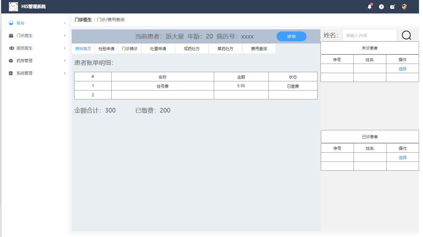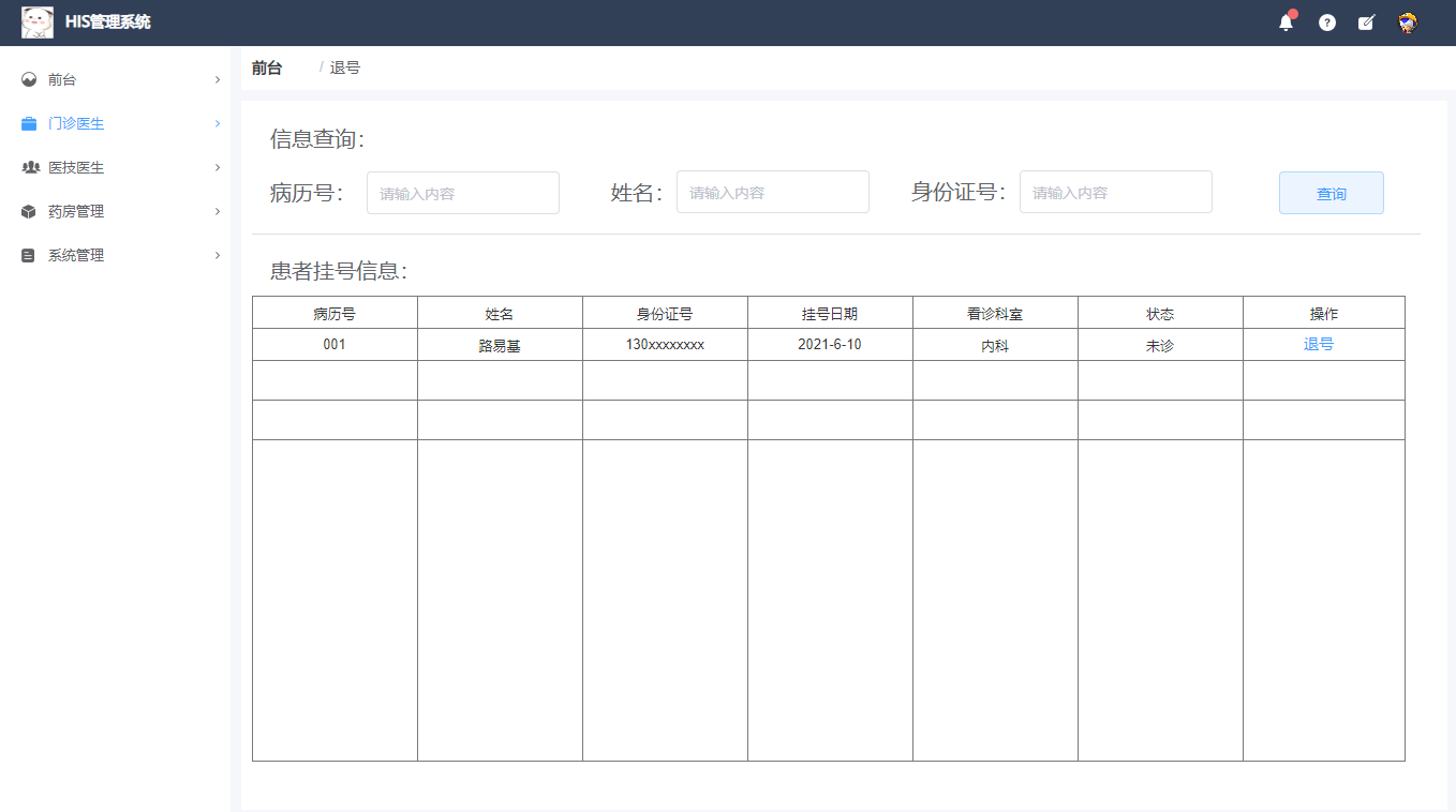 基于Spingboot的HIS医院门诊信息系统设计与实现 毕业论文+项目源码及数据库文件