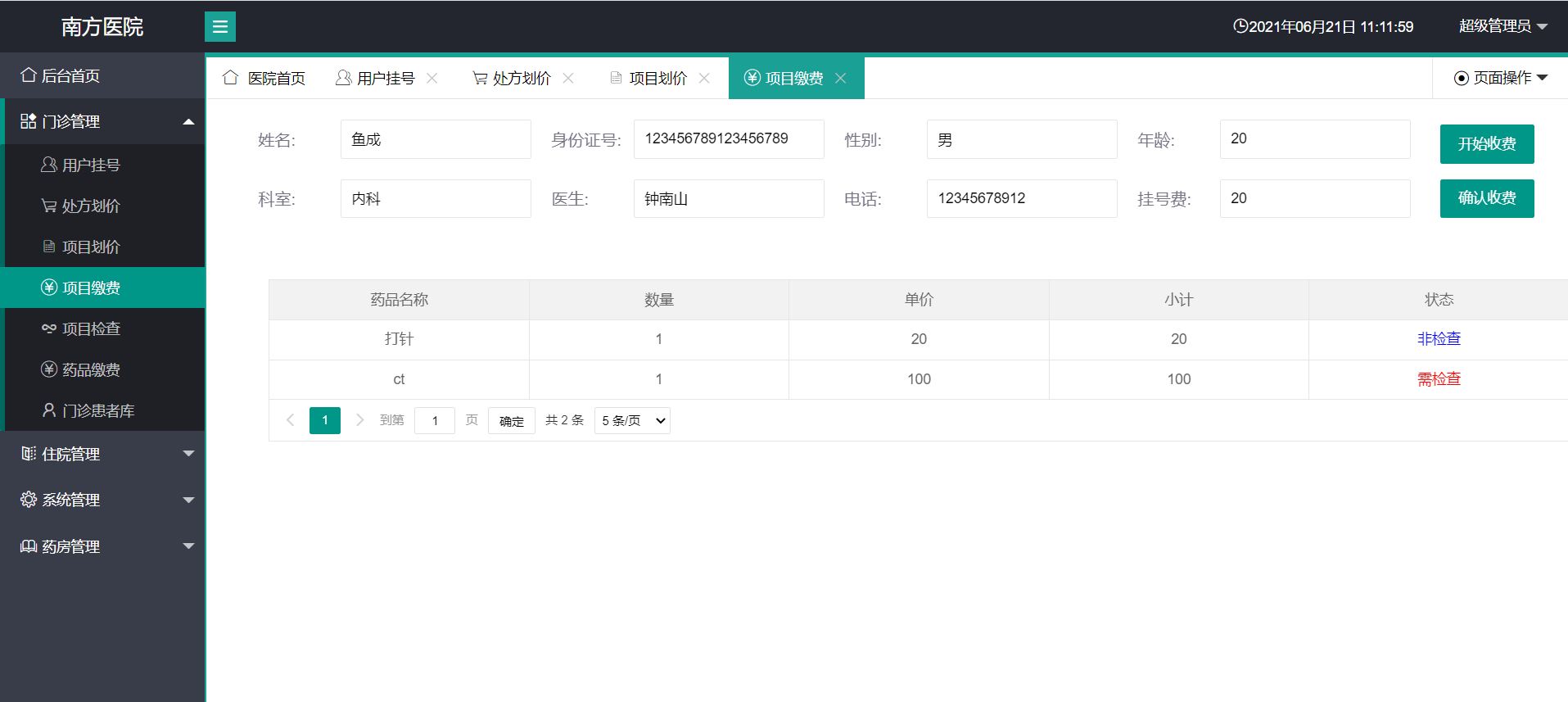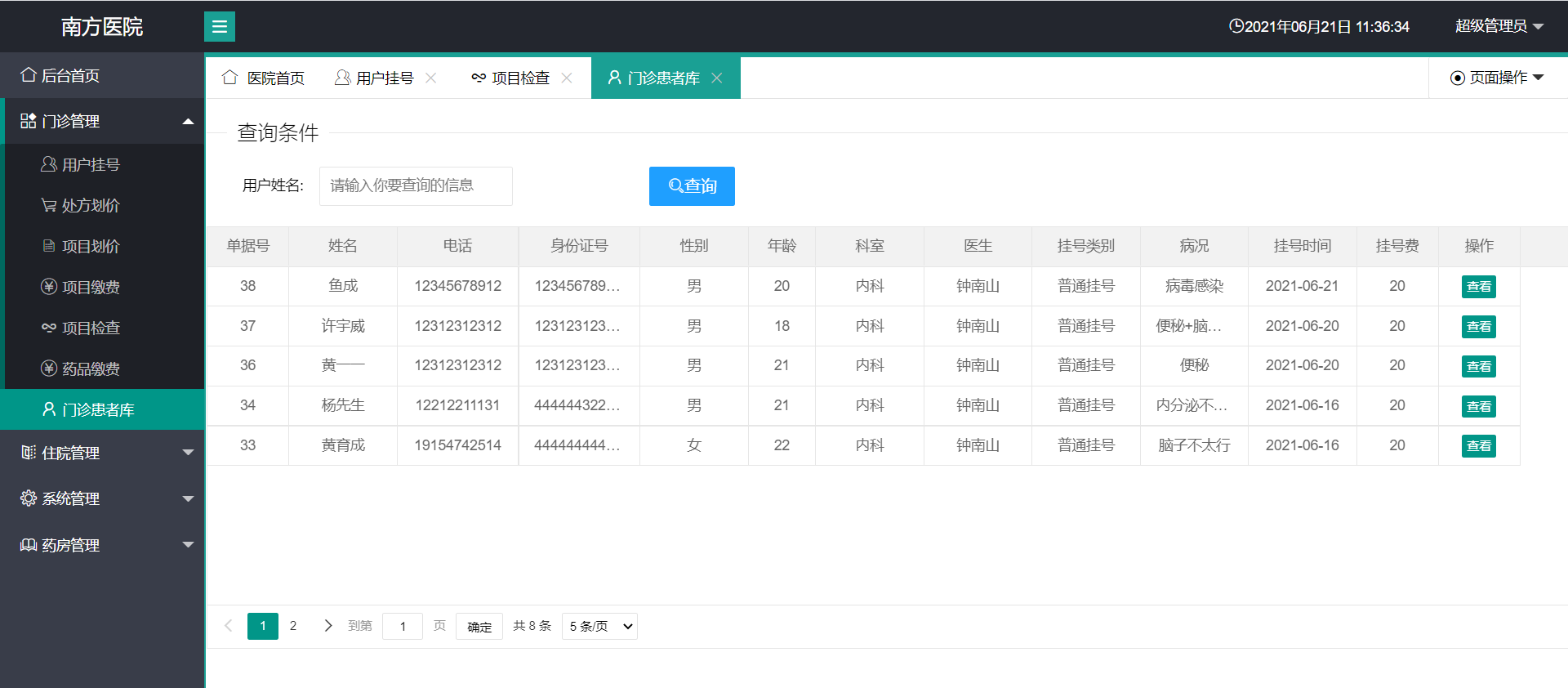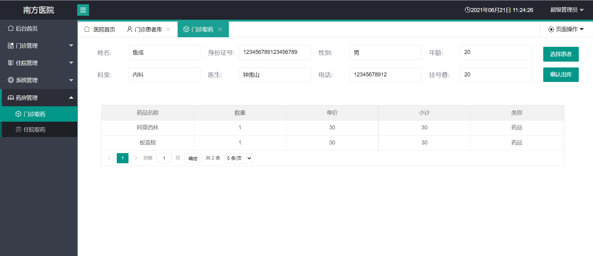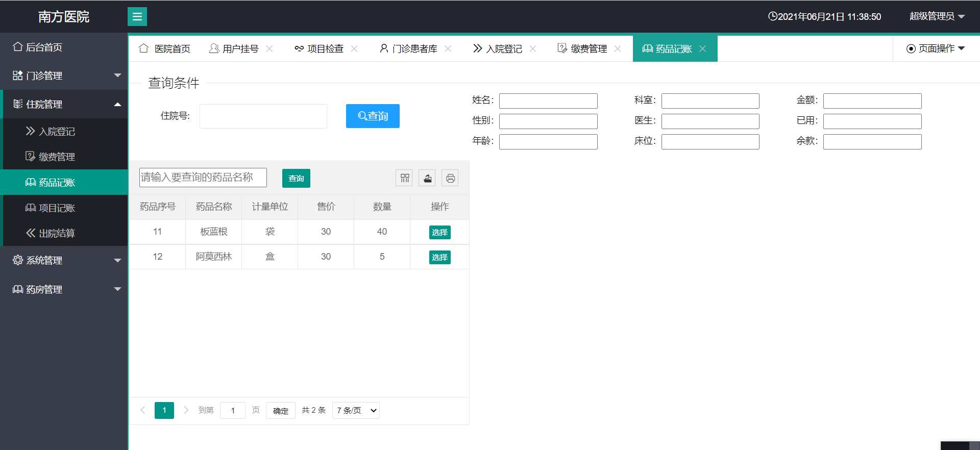 基于Springboot和IAEA的医院管理系统(挂号、缴费、取药、住院) 毕业论文+项目源码及数据库文件