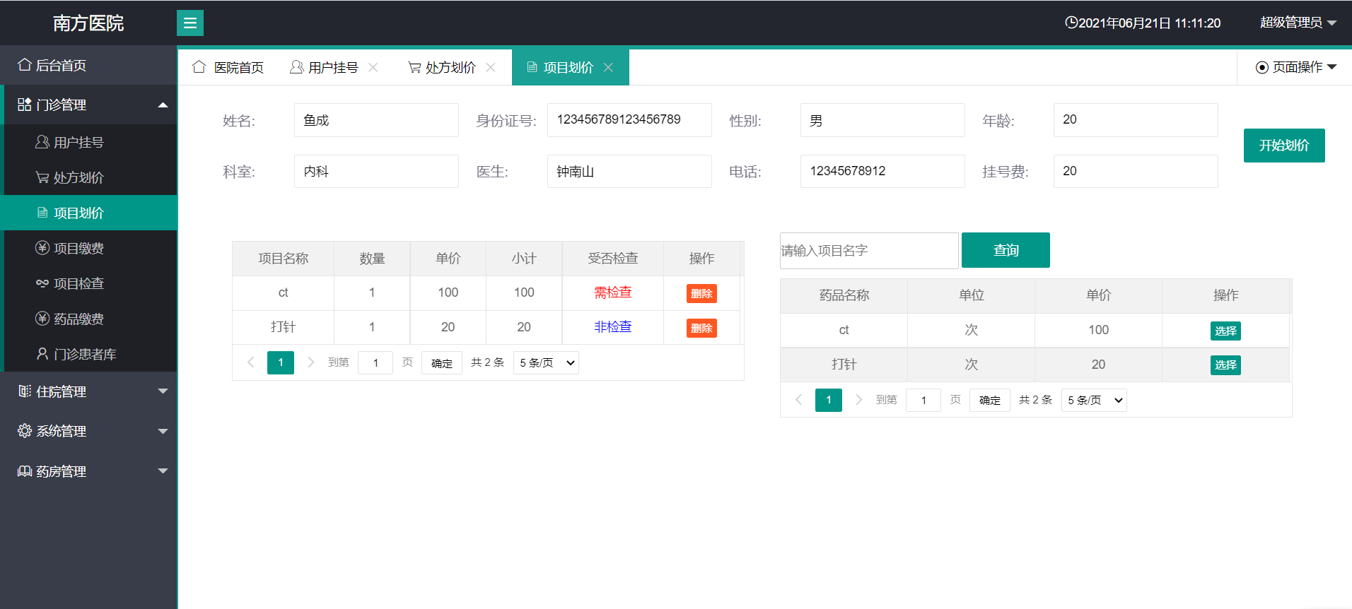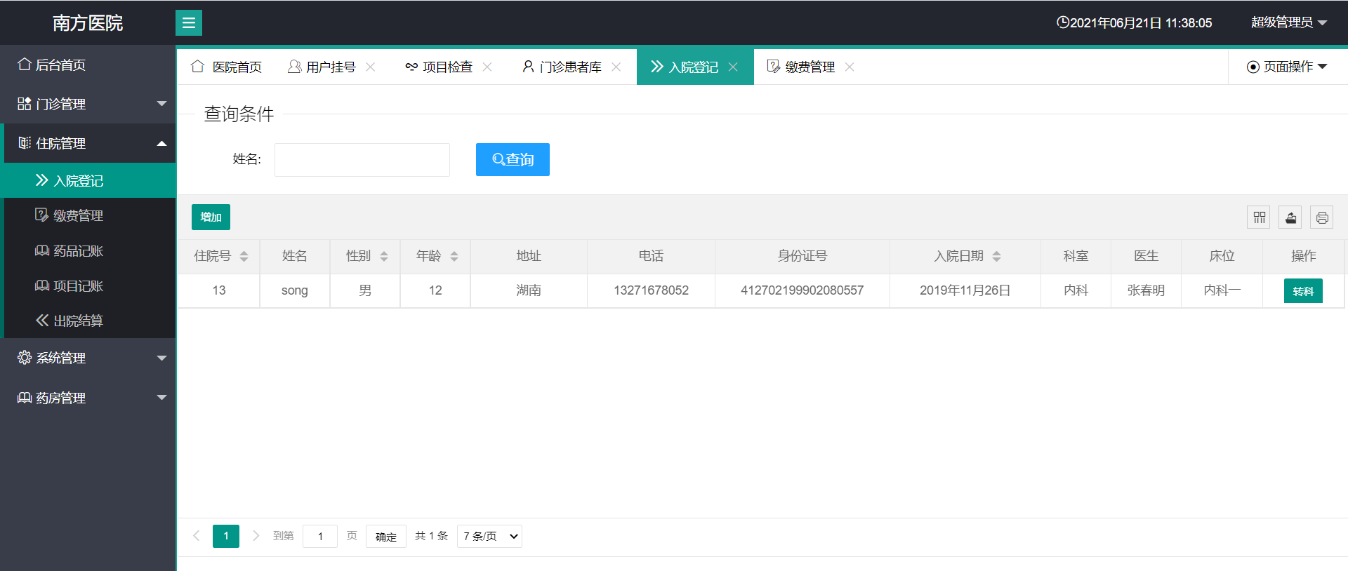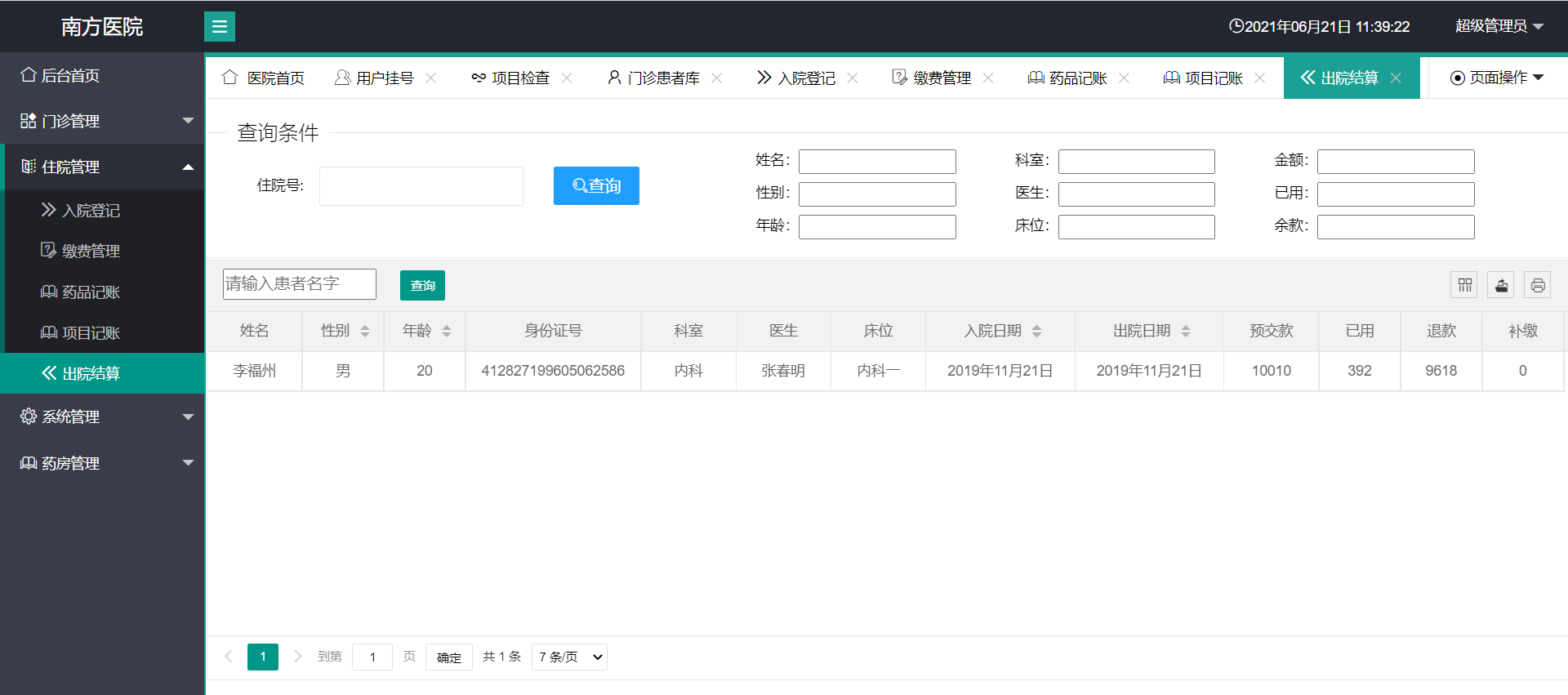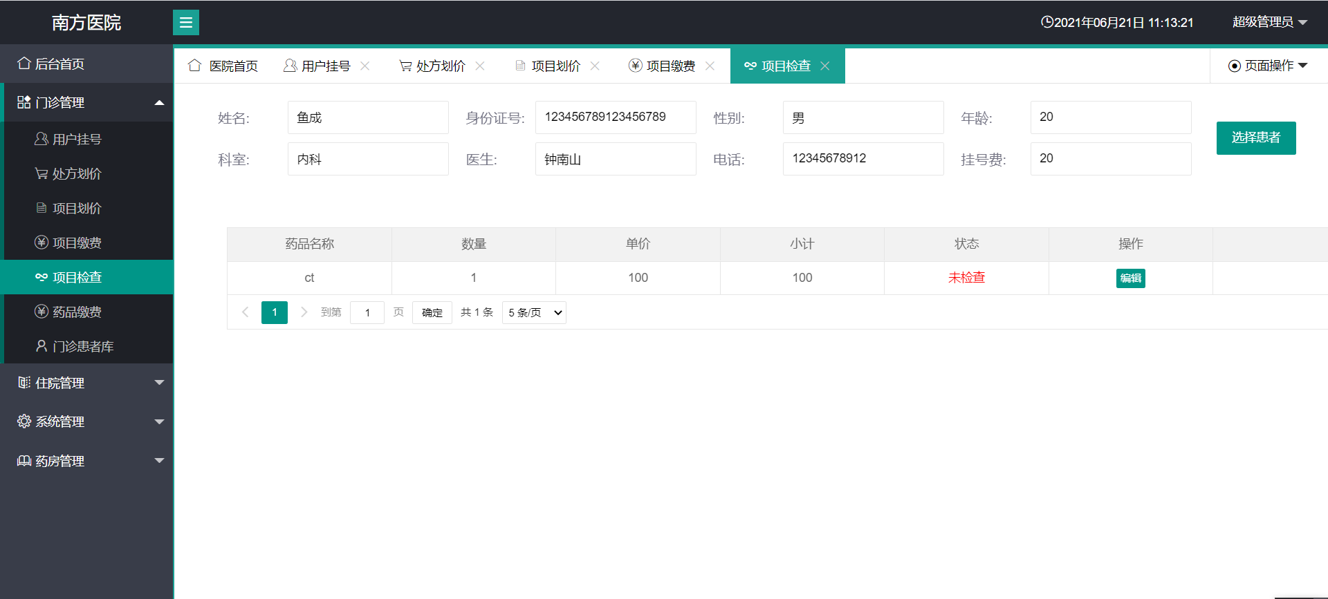 基于Springboot和IAEA的医院管理系统(挂号、缴费、取药、住院) 毕业论文+项目源码及数据库文件