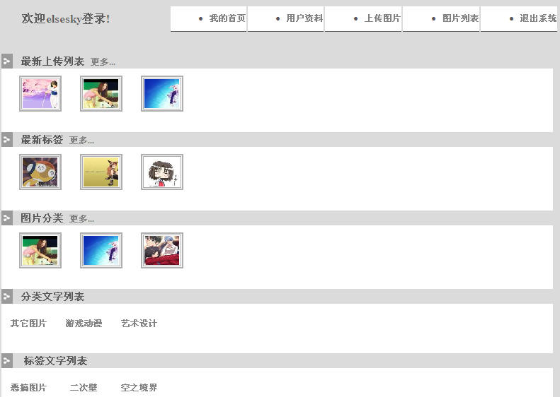 This thesis mainly describes how to developing fully functional pictures upload and picture management system. This system can easy to add, delete pictures and categories. In the backstage management, is mainly to implementing user and pictures management and user information changing. In this system, picture uploading is intuitionisticly showing, and the picture is need to be shown user friendly.