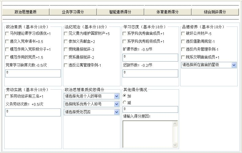 大学期间,综合测评计算是每学期必不可少的工作。人工计算综合测评是一个很繁杂的过程:每个学生先计算自己的综合测评成绩,制成草表,上交给班委;然后班委核对并将成绩录入制成电子文档上交给院系相关部门。在这个过程中,学生常常感到厌烦,因而草表的准确率很低;接着人工核对、录入成绩,造成工作量大,效率低下,准确率也无法得到保证。所以,广大师生迫切希望信息化综合测评系统的产生。利用该系统,同学们可以方便准确地计算出自己的综合测评成绩,并能将结果上传至服务器,省去班委人工核对、成绩录入这些烦琐的工作。而且,系统提供的查询功能可以方便同学们对自己所需信息的检索。该论文主要介绍了网络上最受欢迎的Java Applet技术、系统的分析设计、各个功能模块的实现、系统的测试调试、以及系统开发过程中遇到的问题和问题的解决。