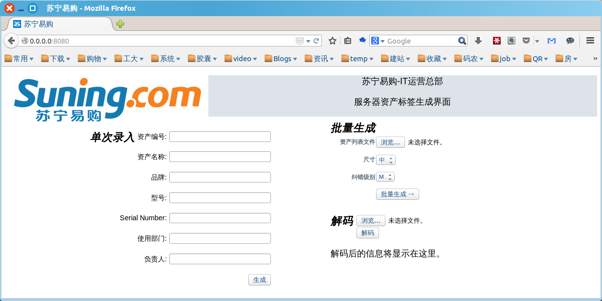 When entering 21 Century, the high-tech industry has developed rapidly. With the development of computer sciences, internet, internet of things, cloud computing, etc., the informatization level of our society is greatly improved. Now, the trend of replacement of traditional 1D bar code with 2D code is becoming increasingly evident. This project is for asset management and speeding up asset inventory implemented by Suning Yigou Ecommerce Ltd.