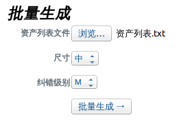 This task provides mass generation and one time generation. The generated QR code image is accussable on Android and IOS system. When scanned by mobile phone apps, then the asset information will show up.
