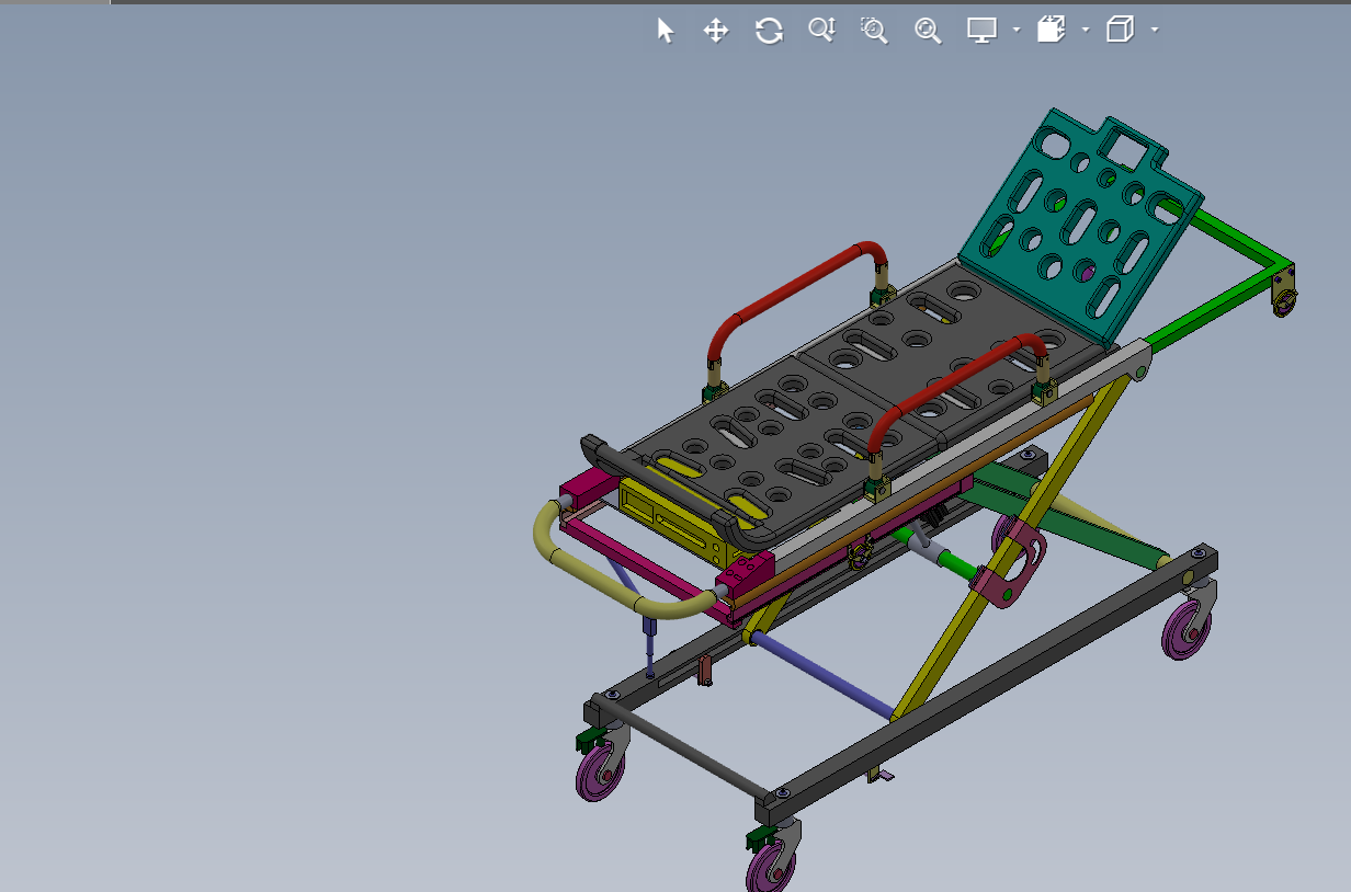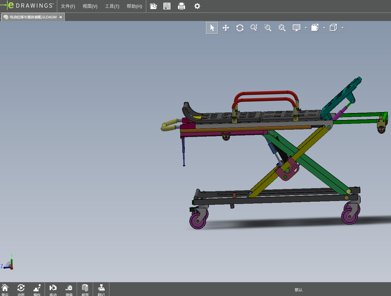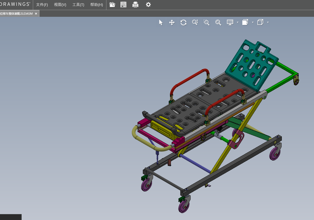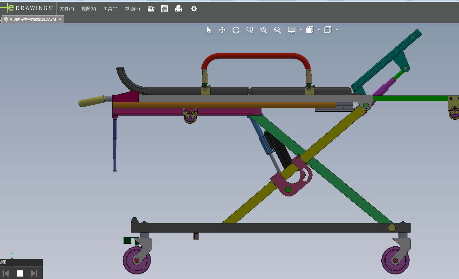 电动医用的位移车,是一种针对在医院和老人护理使用的便捷的设备,用于在危重病人以及瘫痪病人的治疗上使用的有特殊使用需求的一种设计结构,在能随意的实现调节车和床集合的背部结构和脚部倾斜的角度。即使在治疗中不能自理的病人,在护理的人员也可以通过电动位移车的控制系统进行便捷的操作,使得在护理上减少照顾病人和残患病人的护理劳动的强度。本文的设计针对上述的结构性质的情况,提出并设计一种新型的医院和老人护理护理用的电动位移车,首先对整体的结构进行分析,采用三维建模等设计的软件,本次使用soliderworks对位移车的结构进行建模和设计的装配,然后在导出到CAXA软件中进行图纸的修改。研究了在设计升降位移系统在各种实现运动状况下,角加速度在对病人的舒适度造成的影响,分析线性推杆在工作中实现各姿态下的一个受力的状况,进行优化性的功能设计,对位移车的部件分别进行了运动学计算和动力学的分析优化;实现角加速度最大值在最小化下的。