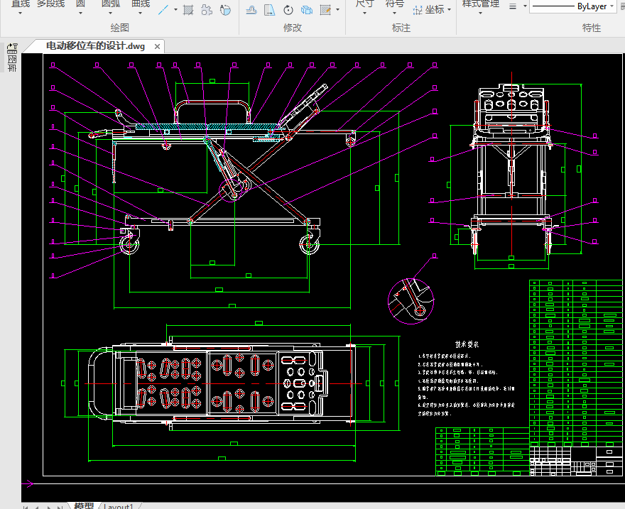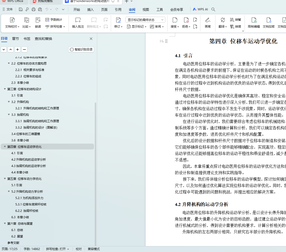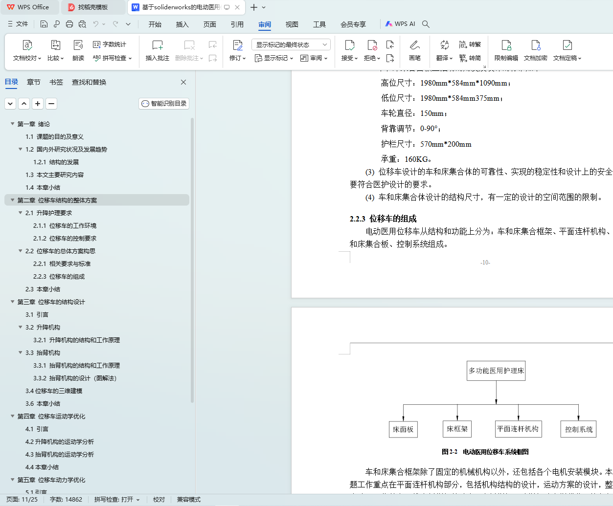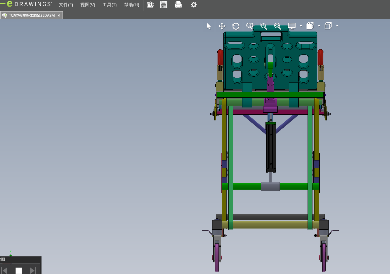 电动医用的位移车,是一种针对在医院和老人护理使用的便捷的设备,用于在危重病人以及瘫痪病人的治疗上使用的有特殊使用需求的一种设计结构,在能随意的实现调节车和床集合的背部结构和脚部倾斜的角度。即使在治疗中不能自理的病人,在护理的人员也可以通过电动位移车的控制系统进行便捷的操作,使得在护理上减少照顾病人和残患病人的护理劳动的强度。本文的设计针对上述的结构性质的情况,提出并设计一种新型的医院和老人护理护理用的电动位移车,首先对整体的结构进行分析,采用三维建模等设计的软件,本次使用soliderworks对位移车的结构进行建模和设计的装配,然后在导出到CAXA软件中进行图纸的修改。研究了在设计升降位移系统在各种实现运动状况下,角加速度在对病人的舒适度造成的影响,分析线性推杆在工作中实现各姿态下的一个受力的状况,进行优化性的功能设计,对位移车的部件分别进行了运动学计算和动力学的分析优化;实现角加速度最大值在最小化下的。