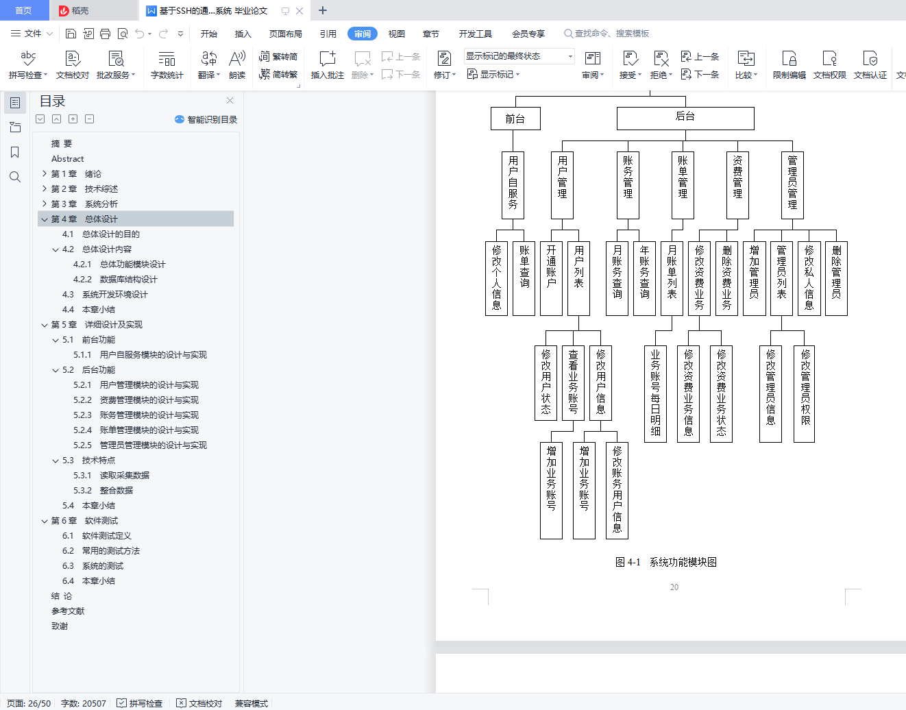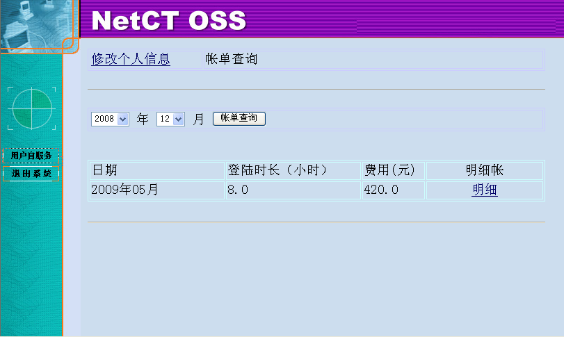 This thesis use Oracle data bank、JSP for the Web development accounting to system requirement. This system took Java as the programming foundation language. And we used the SSH construction to buildup the system’s flexible. We used the JDBC technology to connect the database. The system divides two parts. One is front stage, and the other one is backstage. The front stage is the user self service module. It can modify the information of the users. Backstage include five functions:user management、bill management、bookkeeping management、the fees management, the manager manage. The thesis discussed the system’s procedure. The procedure was composed of feasibility analysis, requirement analysis, and implementation procedure.