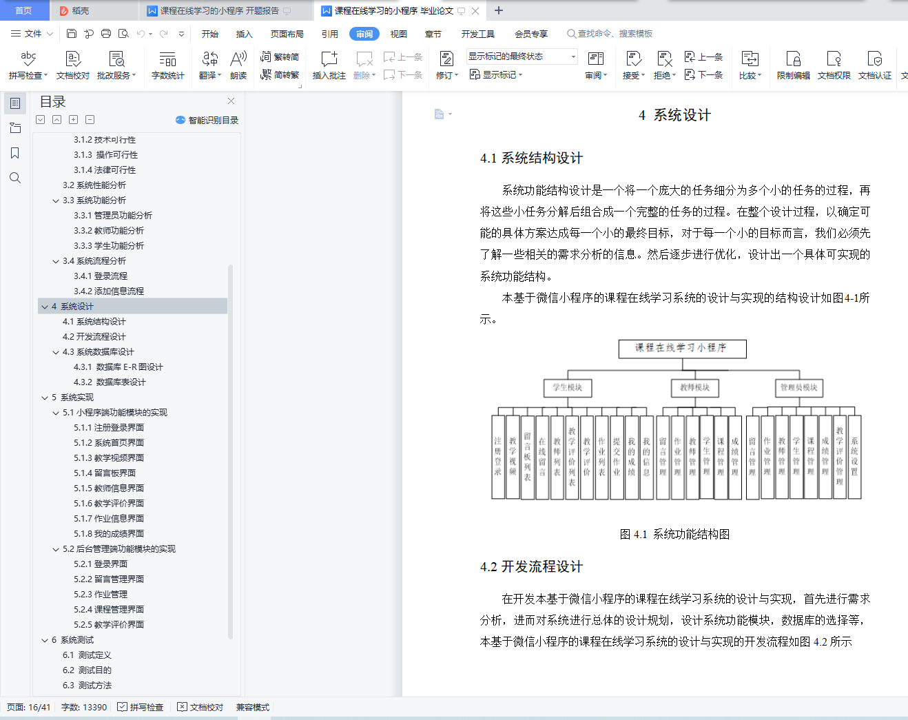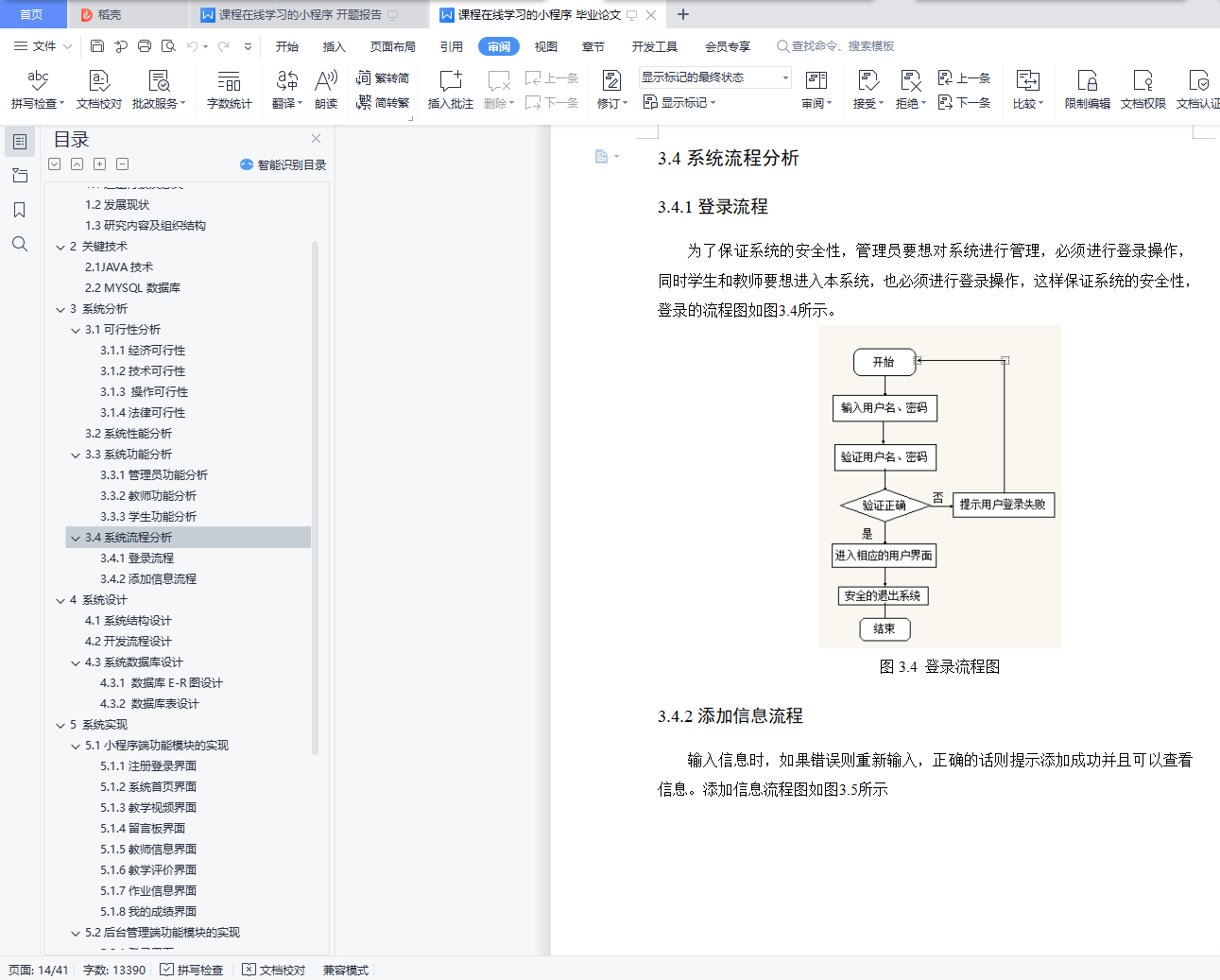 摘 要随着移动互联网的飞速发展,网络技术在日常生活中应用越来越广泛,教育行业也在互联网大潮中紧跟时代的步伐。随着我国综合国力的不断增强,社会对于人才的需求越来越大,对人才质量的要求也越来越高,人们除了在做好自己的本职工作的同时,还需要利用空闲的时间来给自己充电,进行个人技能和价值的提升以跟上社会进步的步伐。但是传统的校内课堂教育对时间、地点的限制太多,而在线教育刚好能满足这些需求,在线教育突破了传统教育的局限性,不仅可以让学生随时随地的学习,还可以让师生突破时空界限,实现互动、反馈和交流。本文主要介绍了基于微信小程序的课程在线学习系统的设计与实现的开发过程,基于JAVA编程语言开发,对开发环境、系统设计、系统实现、系统测试方面进行分析。系统学生实现了主要是实现在课程在线学习系统的功能,帮助学生进行在线交流学习,教师可以进行在线发布作业信息,学生可以进行在线练习,观看视频。对教学进行评价。这里的 评价只能管理员查看,老师没有权限查看,管理员在系统后台可对系统进行全面管理,确保系统正常稳定运行。关键词:在线课程;在线学习;在线教育;小程序;JavaAbstractWith the rapid development of mobile Internet, network technology is more and more widely used in daily life, and the education industry is keeping pace with the times in the tide of Internet. With the continuous enhancement of China's comprehensive national strength, the social demand for talents is increasing, and the requirements for talent quality are becoming higher and higher. People need to use their free time to recharge themselves. Improve personal skills and value to keep up with social progress. But the traditional in-school classroom education has too many restrictions on time and place, and online education can just meet these needs. Online education breaks through the limitations of traditional education, not only allows students to learn anytime and anywhere, but also allows teachers and students to break through the boundaries of time and space to achieve interaction, feedback and communication.Based on the development of JAVA programming language, this paper mainly introduces the development process of online learning system based on WeChat Mini Program.The system students realize the function of online learning system in the course, help students to communicate and learn online, teachers can publish homework information online, students can practice online and watch video. Evaluate the teaching. The evaluation here can only be viewed by the administrator, the teacher has no authority to view, the administrator can manage the system in the background of the system to ensure the normal and stable operation of the system.Keywords: online courses; online learning; online education; Mini Programs; Java目 录摘 要 IAbstract II1 绪论 11.1选题背景及意义 11.2发展现状 21.3研究内容及组织结构 22 关键技术 42.1 JAVA技术 42.2 MYSQL数据库 43 系统分析 63.1可行性分析 63.1.1经济可行性 63.1.2技术可行性 63.1.3 操作可行性 73.1.4法律可行性 73.2系统性能分析 73.3系统功能分析 83.3.1管理员功能分析 83.3.2教师功能分析 83.3.3学生功能分析 93.4系统流程分析 103.4.1登录流程 103.4.2添加信息流程 104 系统设计 124.1系统结构设计 124.2开发流程设计 124.3系统数据库设计 134.3.1 数据库E-R图设计 134.3.2 数据库表设计 155 系统实现 185.1小程序端功能模块的实现 185.1.1注册登录界面 185.1.2系统首页界面 205.1.3教学视频界面 215.1.4留言板界面 225.1.5教师信息界面 235.1.6教学评价界面 245.1.7作业信息界面 255.1.8我的成绩界面 265.2后台管理端功能模块的实现 275.2.1登录界面 275.2.2留言管理界面 285.2.3作业管理 285.2.4课程管理界面 295.2.5教学评价界面 296 系统测试 316.1 测试定义 316.2 测试目的 316.3 测试方法 326.4测试分析 32总 结 34参考文献 35致 谢 37
