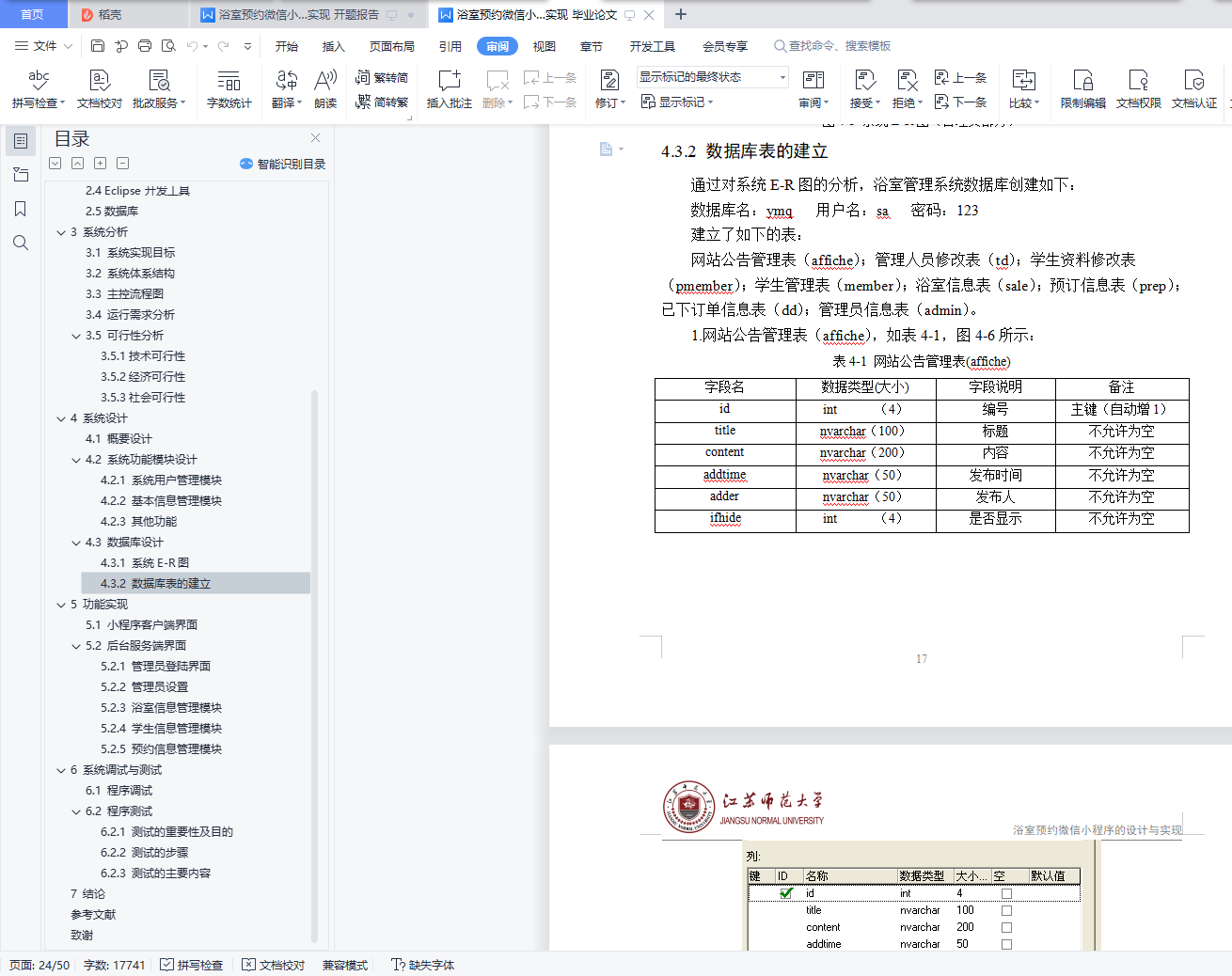 4.3.2 数据库表的建立