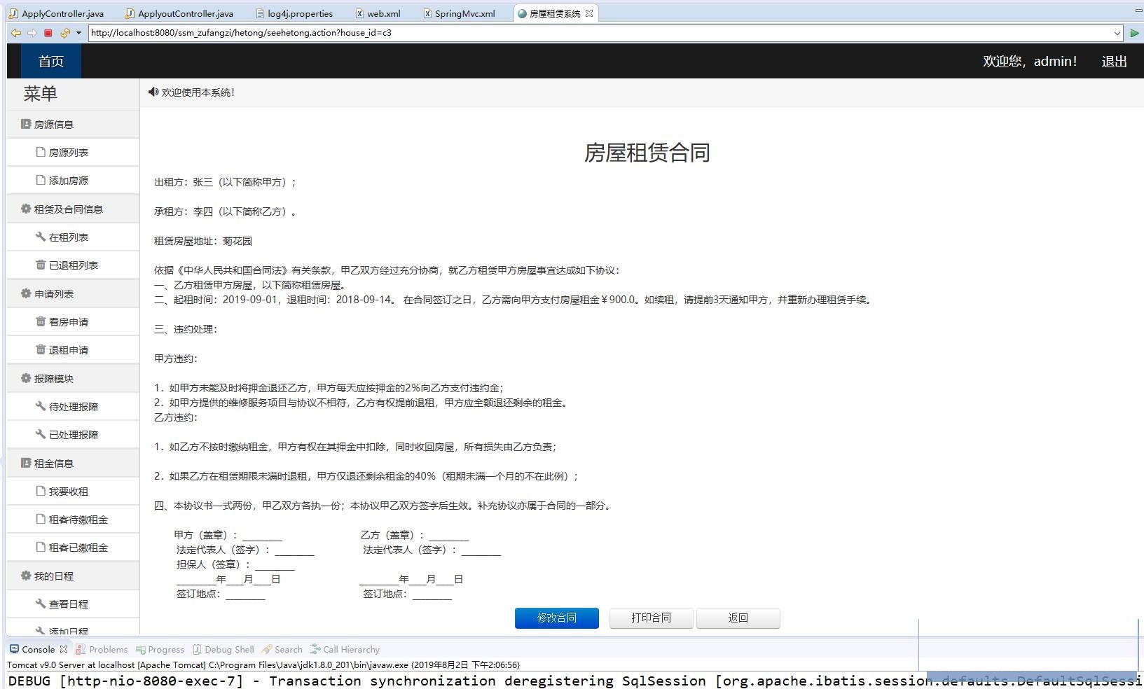 This development, uses the MyEclipse compiler, the JDK development environment, in the network service aspect uses the Tomcat application server, the JSP technology is mainly responsible for the foreground page presentation, SSM framework realizes the business logic control and the database connection, the data persistence function. Shop rental and leasing is an important part of people's life. In the past, the way of advertising rental information is not only time-consuming and inefficient. But now, through the Internet can easily release the shop's various rental, sale, rent, sale and other information. The cost of information dissemination is greatly reduced. And efficient. Therefore, in order to meet the needs of the community to develop the shop rental system, as long as people log on to this site can quickly find their own satisfied shop.
