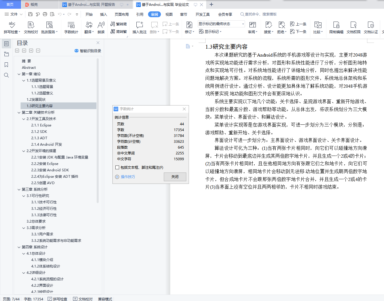 本论文系统地阐述了 2048 小游戏的设计过程以及实现。该游戏是基于 Android 开发平台的,Android 是一种以Linux 为底层,用 Java 语言编写代码的操作系统,主要使用于 Android系统的手机。本文对游戏界面、界面布局、模式选择以及游戏算法设计进行系统的描述,基本实现了游戏的设计、安装和使用。