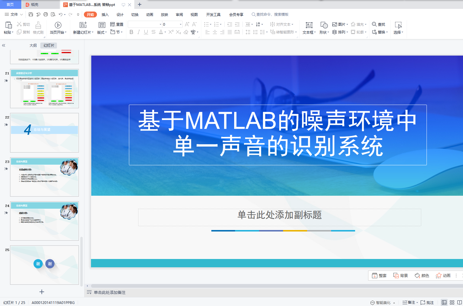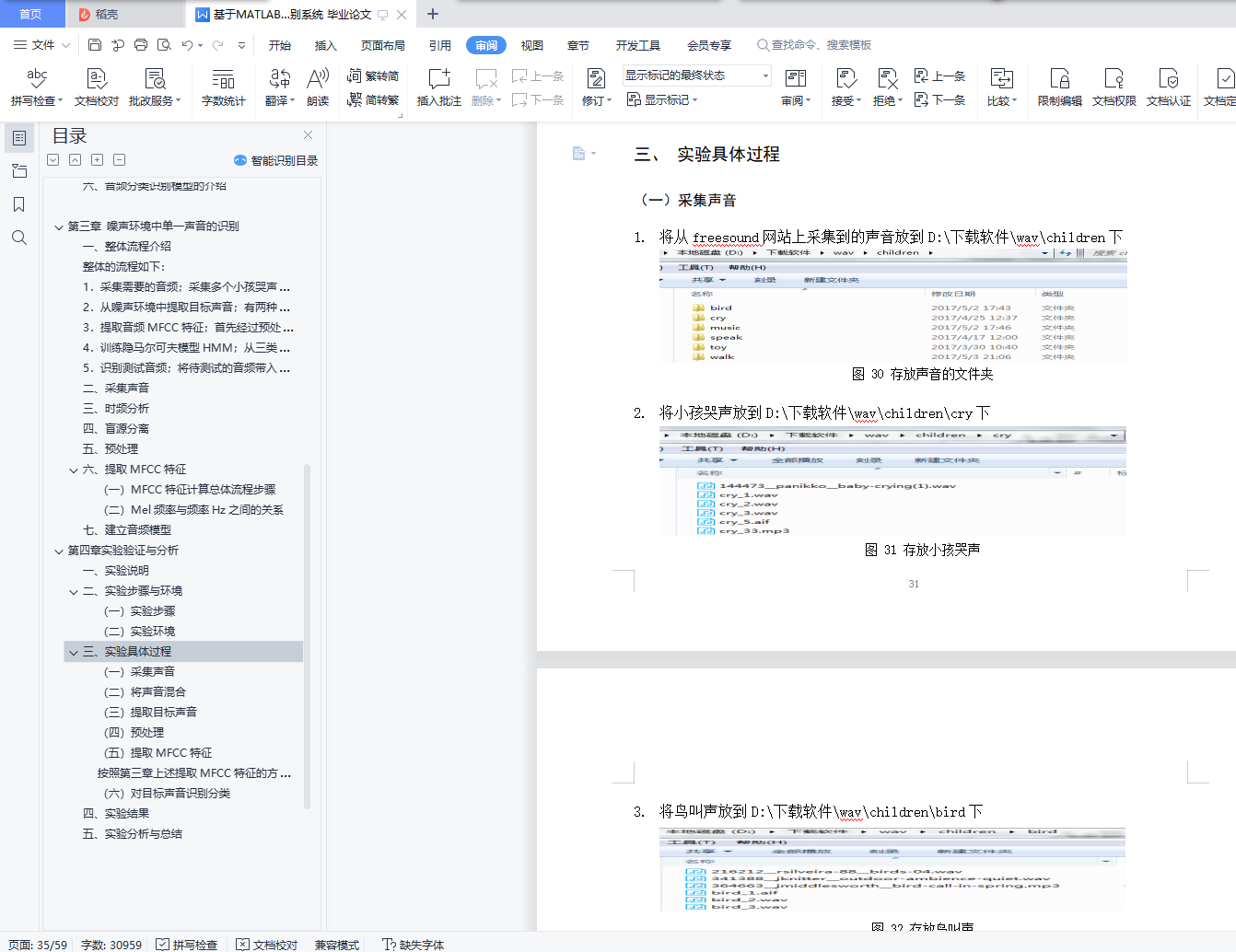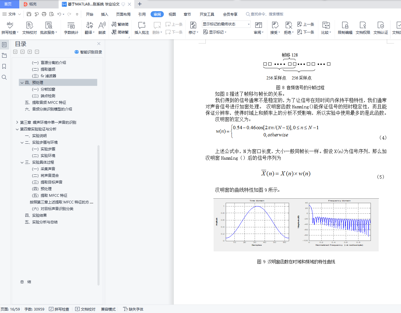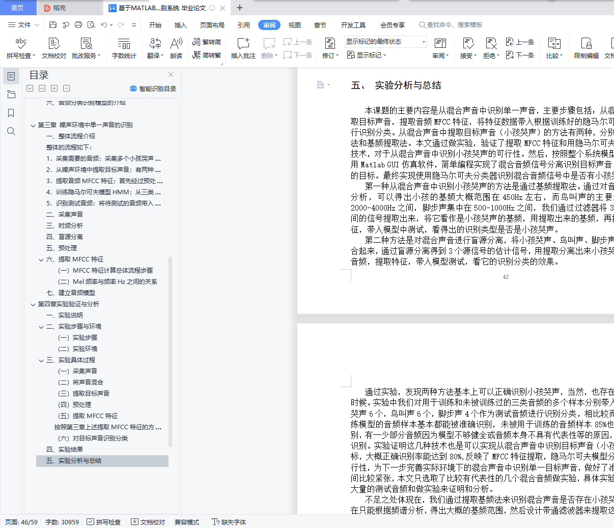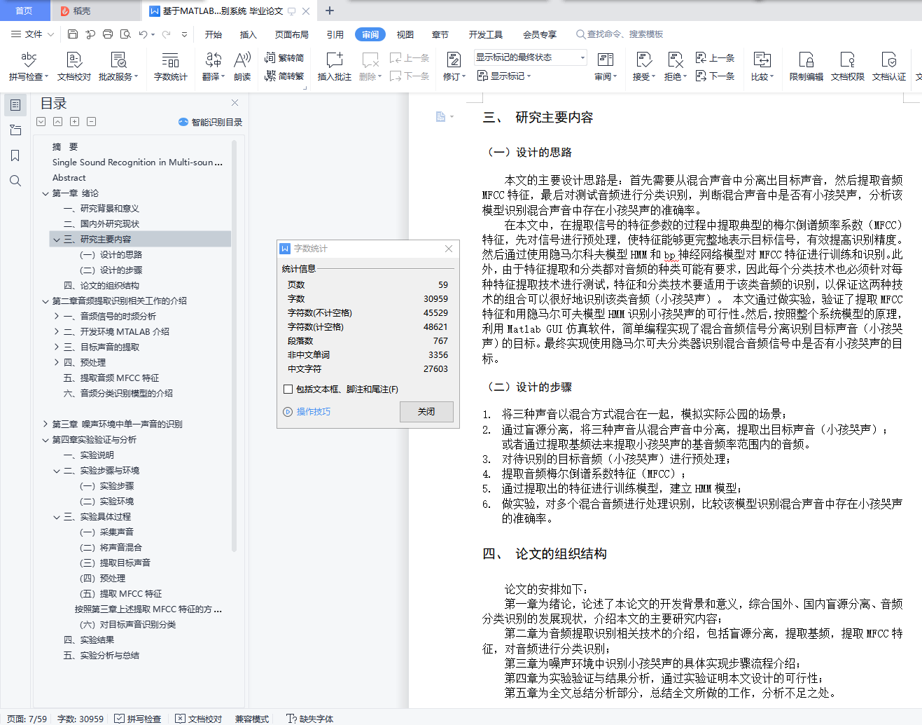 本次设计的仿真实验均在matlab2016b上进行,模拟公园或幼儿园的场景,将小孩的哭声、脚步声、小鸟叫声音三种声音混合在一起。课题专注于如何从这三种混合声音中识别出是否有小孩哭声。主要步骤包括:从混合声音中提取目标声音(小孩哭声),提取音频MFCC特征,将特征数据带入根据训练好的隐马尔可夫模型,进行识别分类。对于如何从三种混合声音中提取出目标声音,本文介绍了两种方法。第一种是根据基频处理的方法,将三种声音录制成一段音频,根据待识别声音的基频范围设计对应的滤波器,将目标声音的基频大致过滤提取出来;第二种是盲源分离,利用盲源分离的方法将这三种声音从混合后的观测声音中分离出来,提取出目标声音。在从混合声音中提取出目标声音(小孩哭声)后,经过分帧加窗端点检测后,提取小孩哭声的MFCC特征,将特征数据带入已经训练好的隐马尔可夫模型HMM中,得出识别结果,比较识别结果与实际类别是否相同,得出模型的识别准确率。