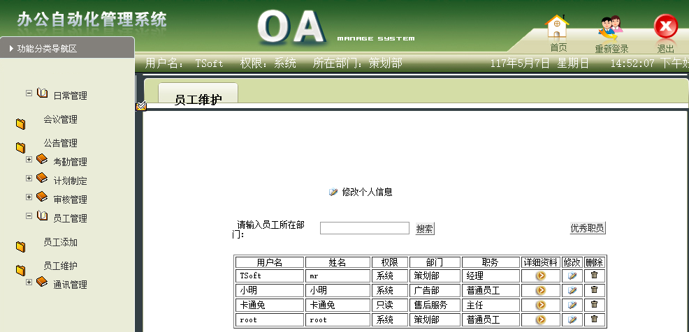 4.4 OA系统日常管理模块设计