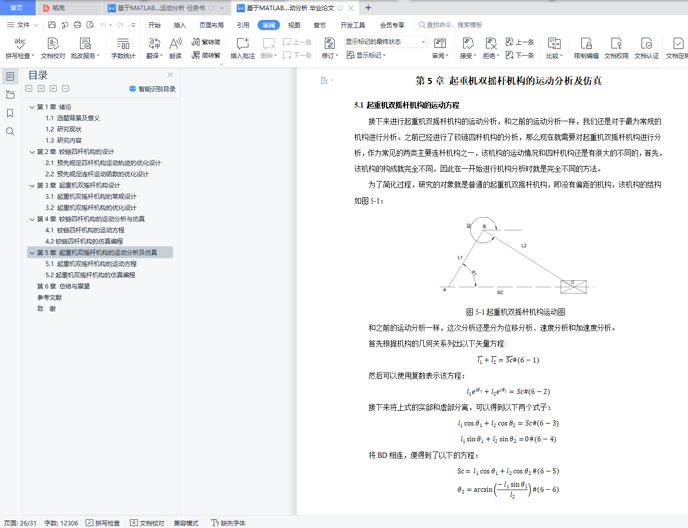5.1 起重机双摇杆机构的运动方程