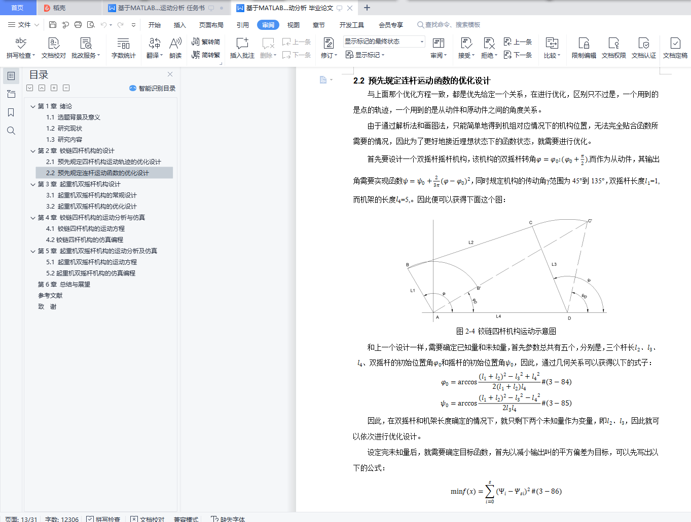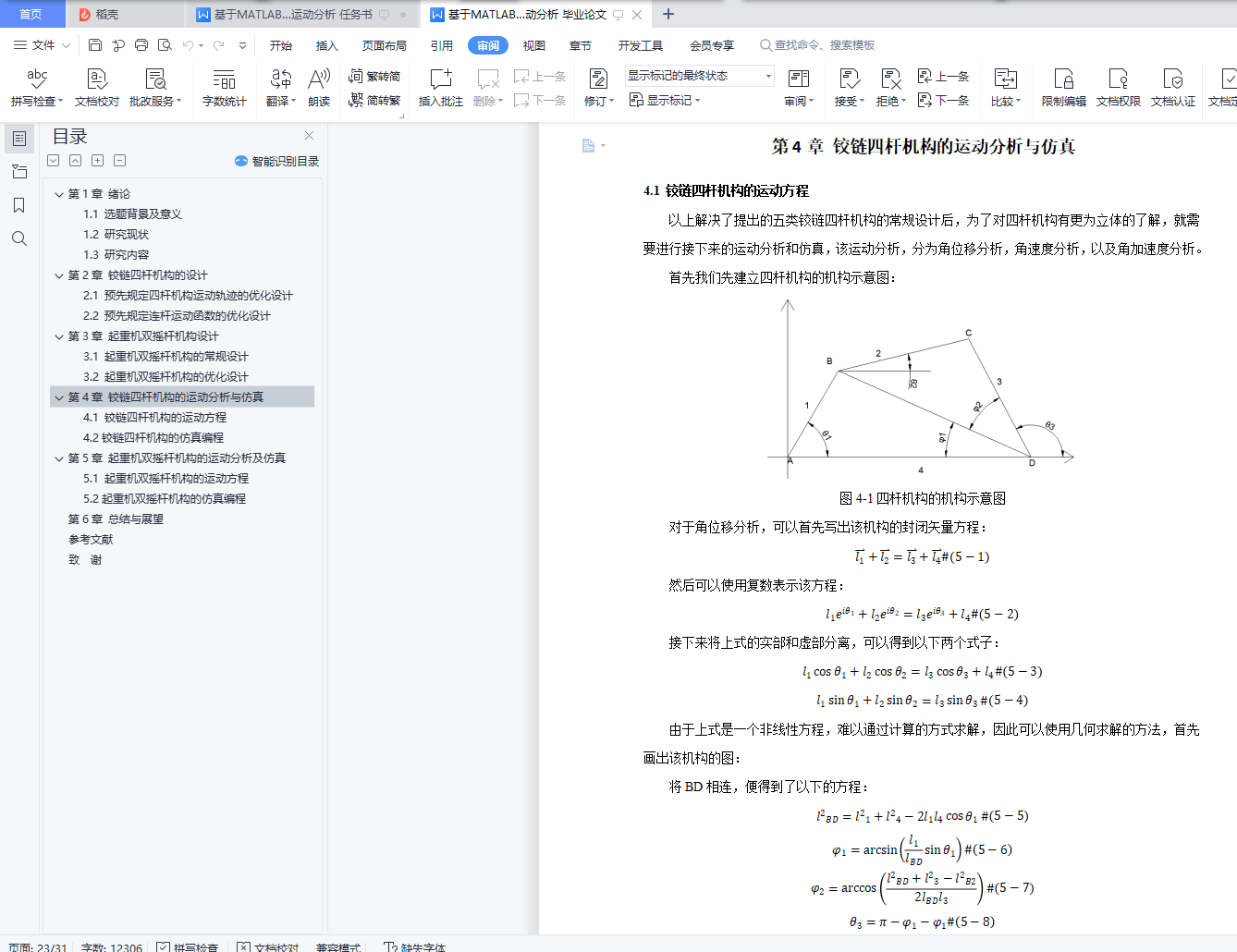 4.1 铰链四杆机构的运动方程