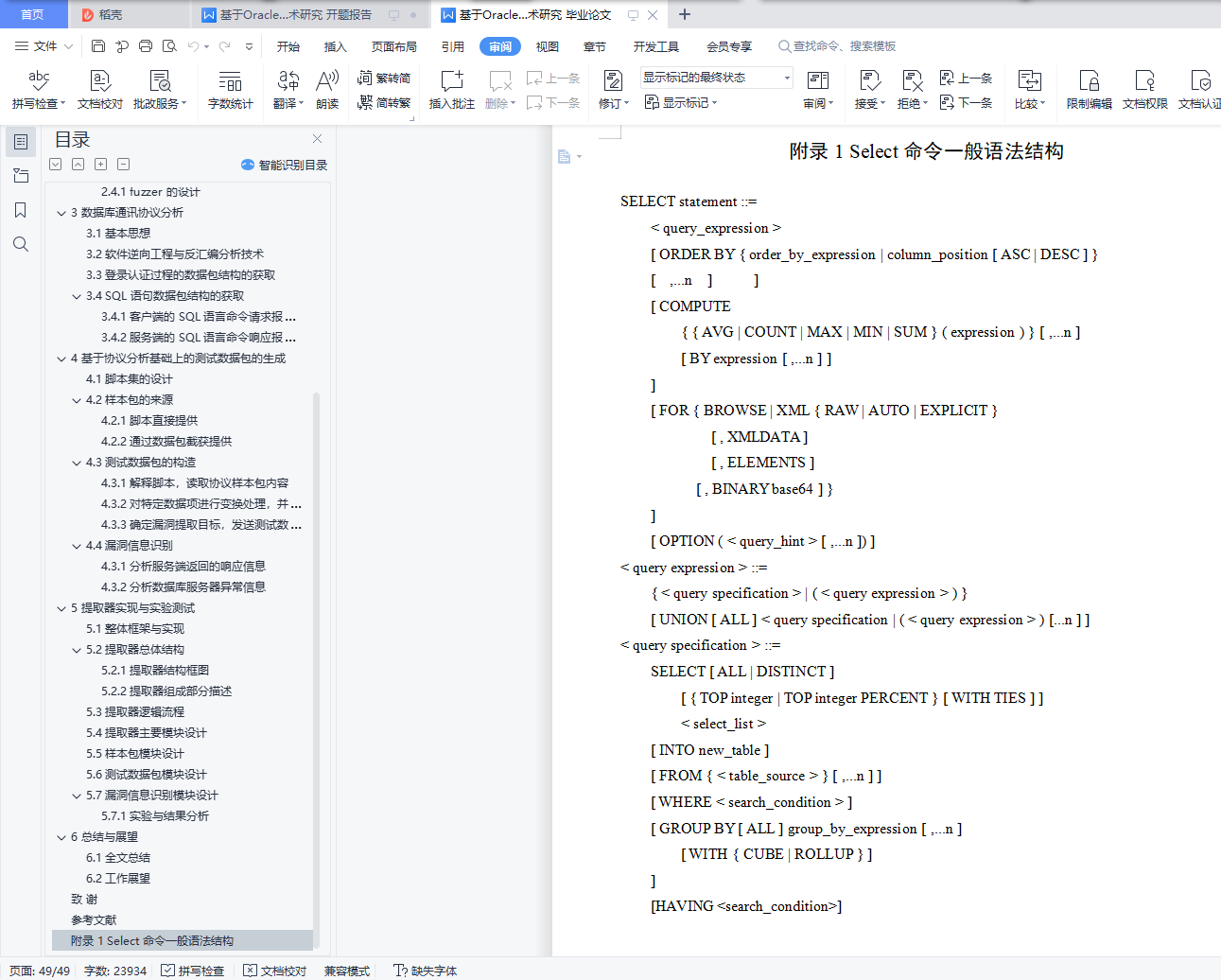 附录 1 Select 命令一般语法结构