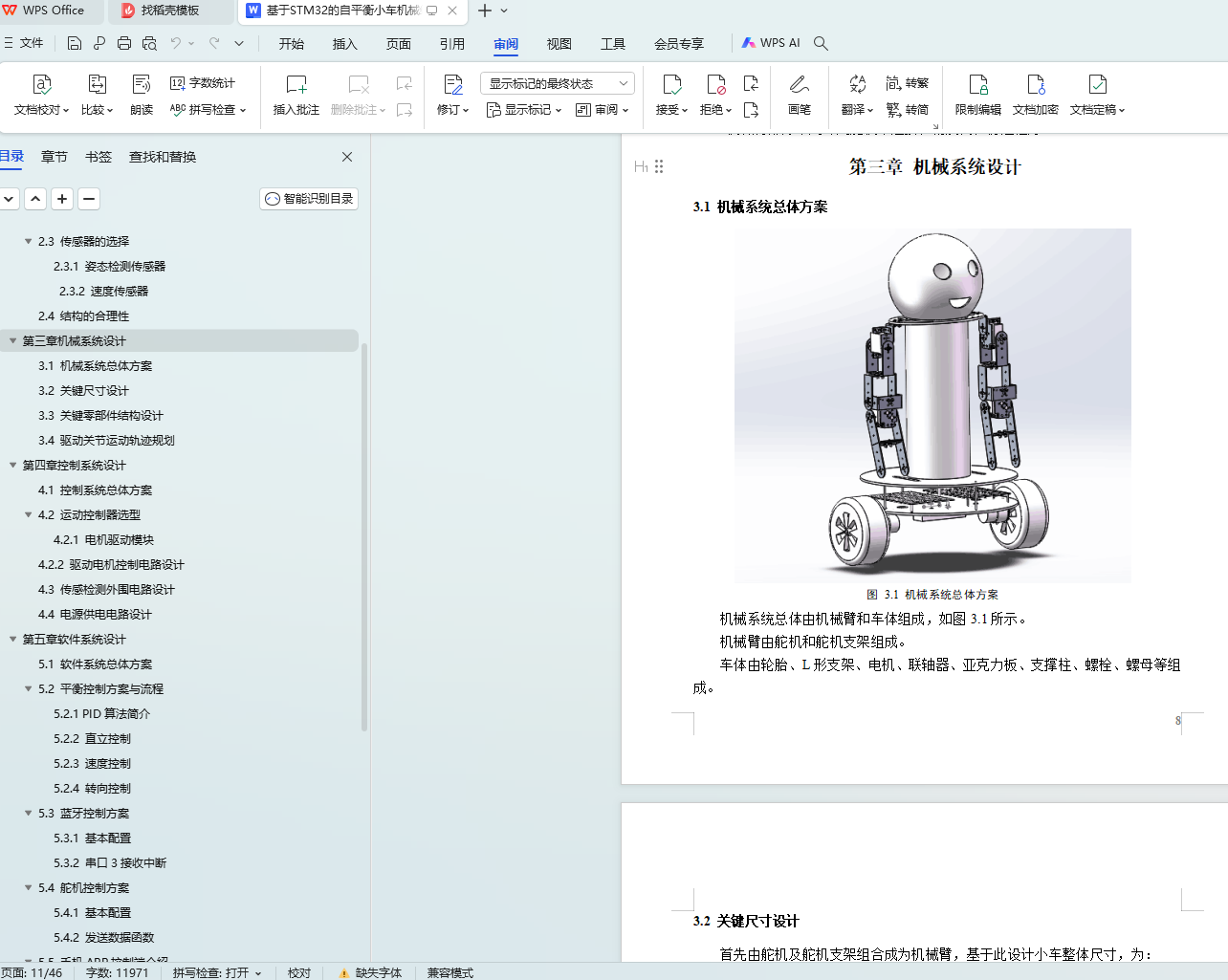 机器人技术是一个集环境感知、轨迹规划、机械手应用等功能于一体的机电一体化系统。它是集中了计算机、机构学、传感技术、电子技术、人工智能及自动控制等多科而形成的高新技术。人类社会始终朝着自动化和智能化方向发展,机器人研发、制造和应用将成为衡量国家科技创新和高端制造业水平的重要标志,是国家科技发展的战略需求。智能机器人的下一步发展将体现在作业能力、人机交互、安全性等诸多方面的提升和改进上。所以,随着社会的发展,智能化已经成为各类产品的主要发展方向,人们也在不断的用科技来改变生活,基于此,我们考虑将平衡车与机械臂相结合,制作一款自平衡服务机器人。本文介绍了基于STM32F103单片机的自平衡小车系统的设计。系统基于陀螺仪,利用PID平衡算法,对小车的速度倾斜角度平衡状态来进行检测,并通过单片机来控制电机来实现小车平衡地运动。系统中采用舵机控制板控制舵机,使机械臂完成一定的动作。本次设计将手机与机器人联系起来,通过手机可以向平衡小车发送命令,平衡小车也可以将自身的数据发送到手机上,从而可以通过手机实时地控制小车,也能在手机上观察到小车的状态。此款机器人主要针对办公室生活和家庭生活中,他可以为在我们疲惫的时候为我们跳一支舞蹈,通过手机蓝牙控制机器人的活动,方便快捷。希望我们的这个机器人可以为我们的生活提供方便,使得我们的生活更为简单。