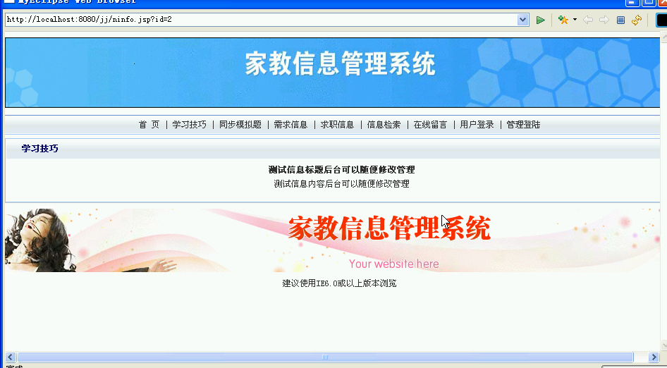 5.2家教信息管理系统首页设计