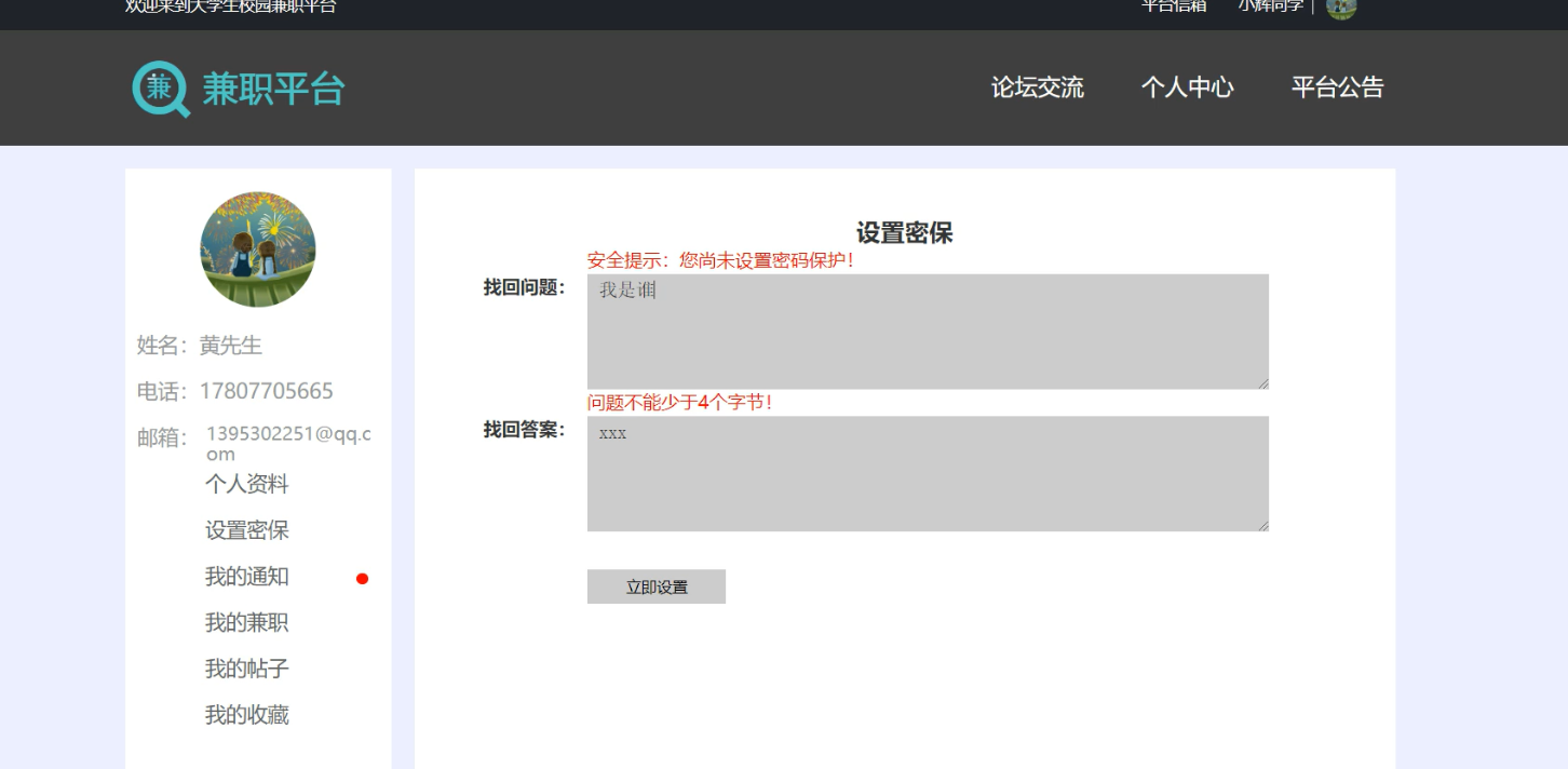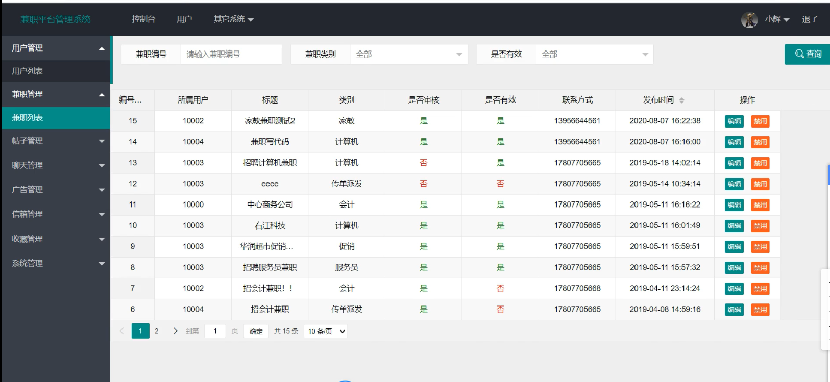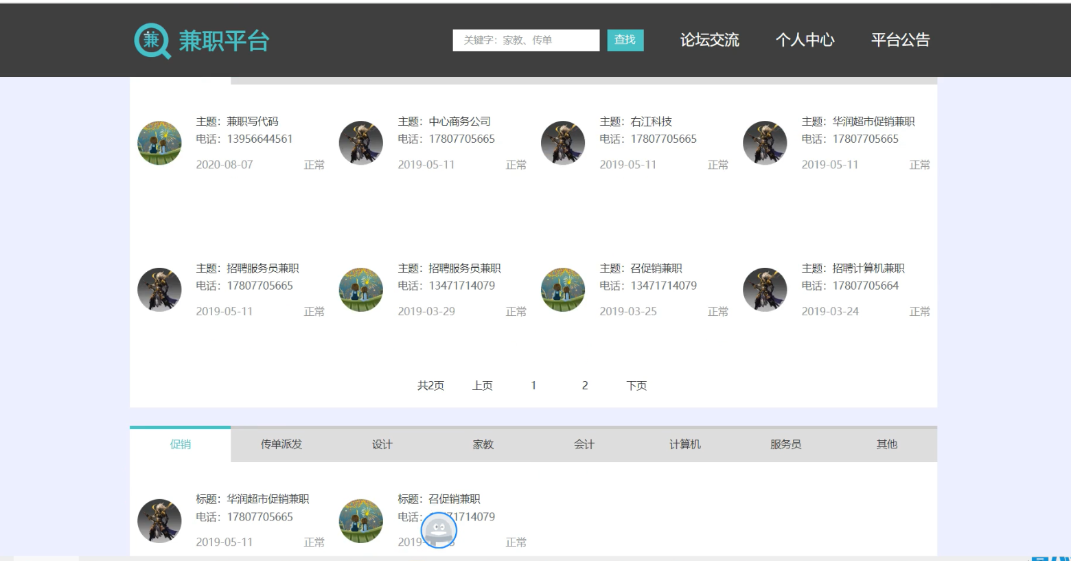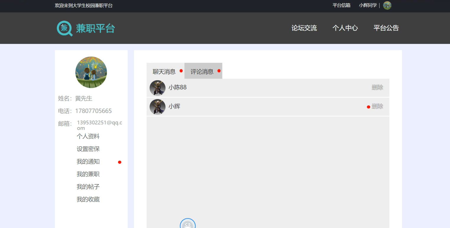 关键字:校园;兼职;管理系统;SSM;MySQL