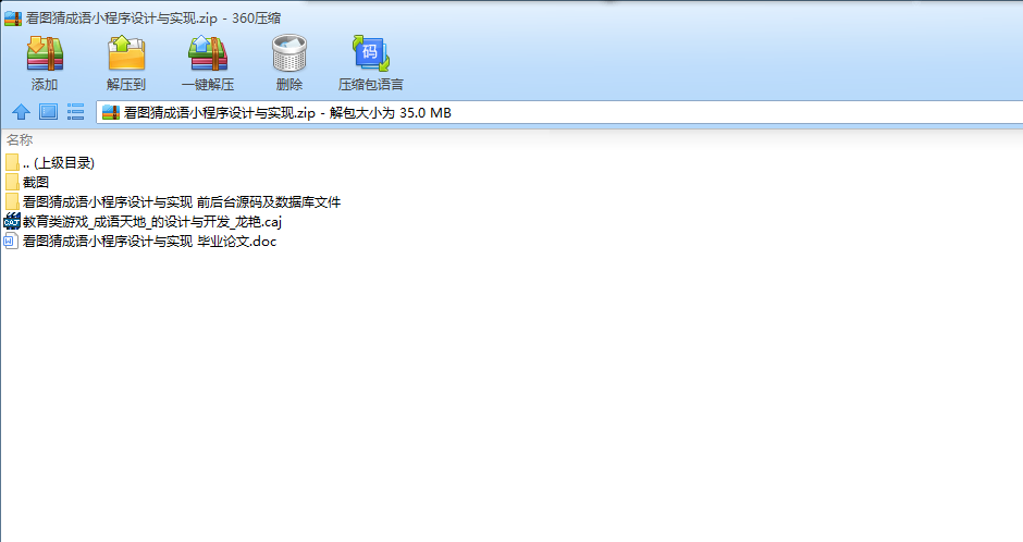 本次设计主要做一个关于成语学习的猜成语游戏小程序。包括开发的坏境和实现流程,对数据库的操作和使用方法。学习者可以根据自身喜好选择相应的游戏模块进行游戏,管理员可以查询成语、添加成语、修改成语和删除成语来管理成语数据。该游戏小程序主要有二个特色:一个是用户可以自由设计成语游戏,即在该游戏小程序中,用户可以自行设计游戏,修改游戏,可以达到你来设计我来猜的效果。
