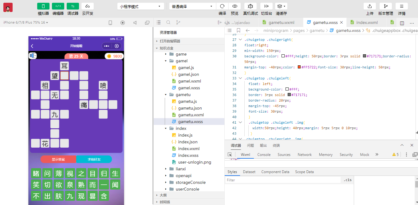 This design mainly does a guessing game Mini Programs about idiom learning. Including the development of bad environment and implementation process, the operation and use of the database. Learners can choose the corresponding game module to play according to their own preferences, administrators can query idioms, add idioms, modify idioms and delete idioms to manage idiom data. The game Mini Programs has two main features: one is that users can freely design idiom games, that is, in the game Mini Programs, users can design their own games, modify the game, you can design the effect I guess.