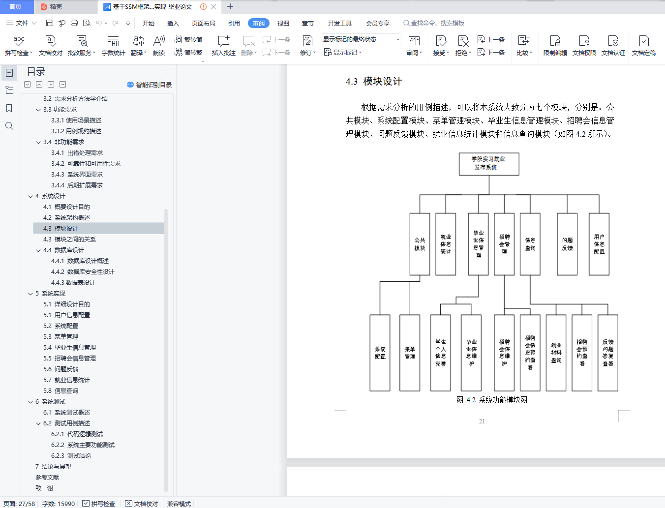 本系统设计并实现了学生信息管理、就业信息管理、实习信息管理、招聘信息发布、数据统计等功能模块,既为就业指导教师提供了工作管理平台,也为学生搭建了通向企业和社会的桥梁。系统在设计前进行了详尽的需求分析,设计时基于SSM和JAVA编程技术,采用Mysql数据库储存系统数据,注重流程简化、架构合理化。经测试,系统功能完整、运行稳定,可以广泛应用在未来的就业管理工作中。