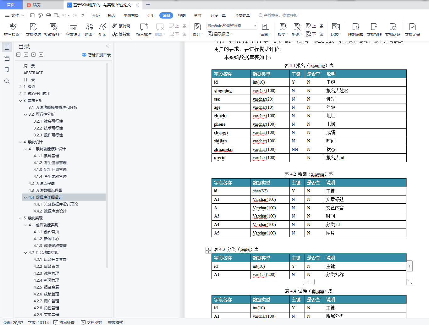 4.4 数据库详细设计